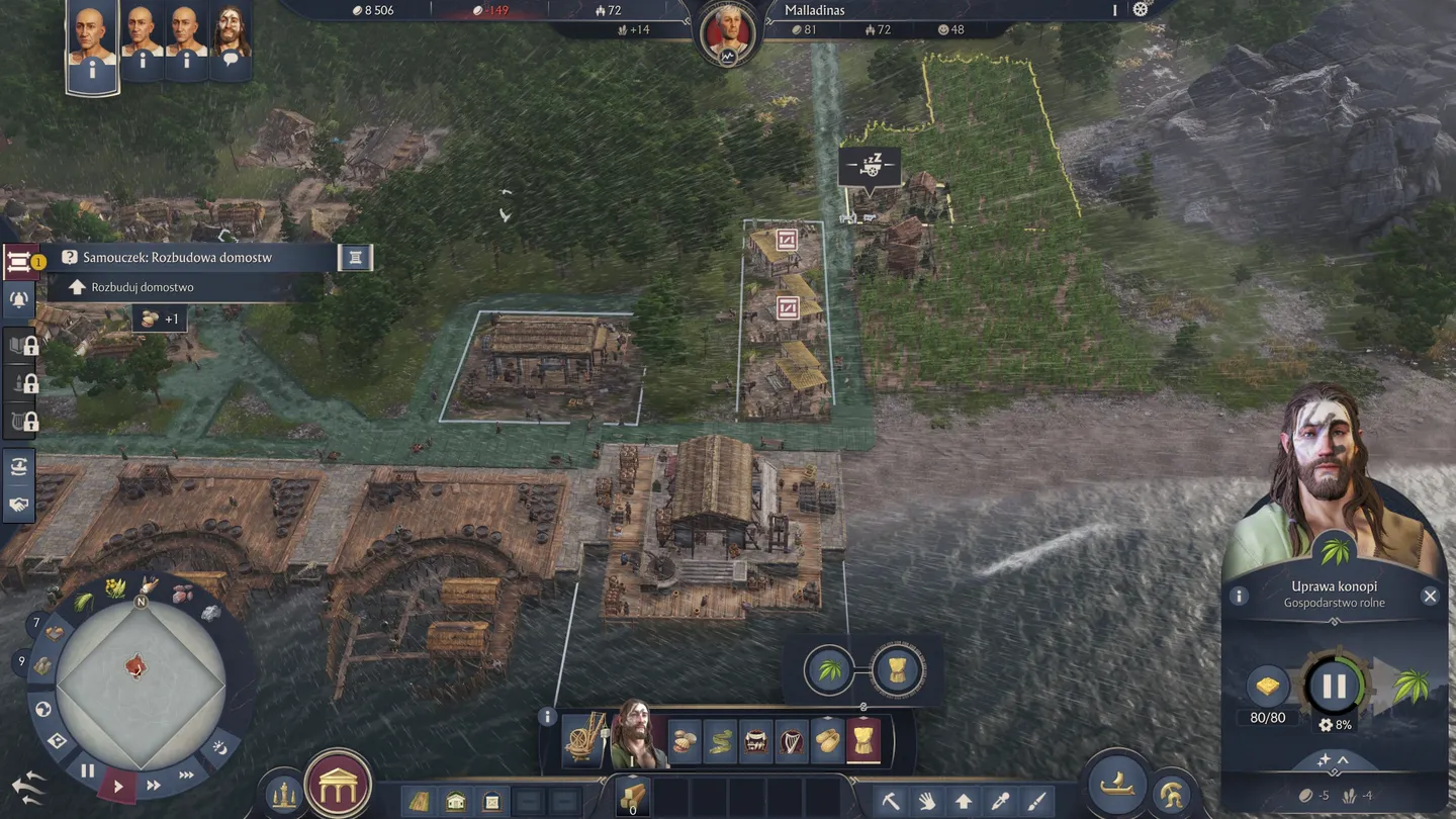 Albion to zupełnie inna bajka – deszczowa, surowa i otoczona nieprzyjaznymi sąsiadami. Barbarzyńcy nie czekają, aż postawimy pierwsze mury, a pomoc z Cesarstwa po prostu przestaje istnieć. To moment, w którym gra wprowadza wątki militarne i strategiczne wyzwania: budowę fortów, zbrojeń i całych łańcuchów produkcyjnych. Można handlować z innymi, można produkować samemu – do wyboru, do koloru.