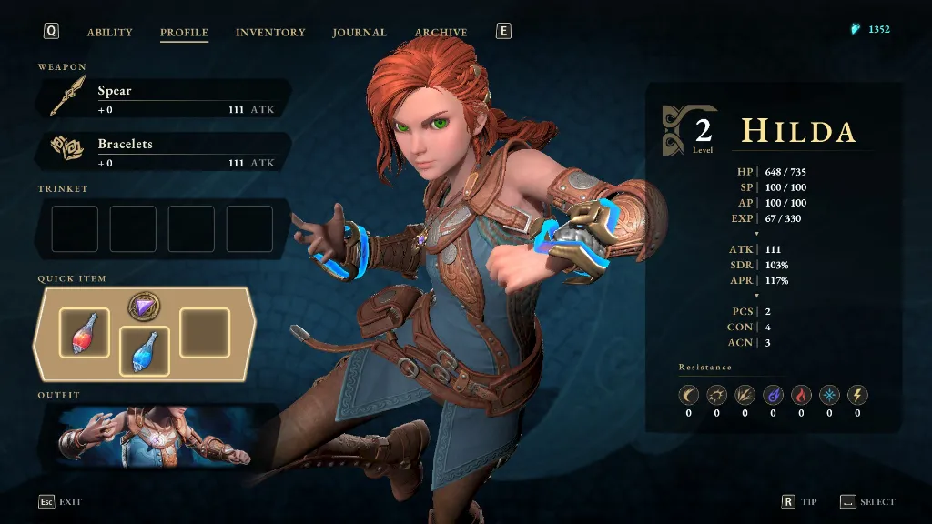 Hilda od początku ma do wyboru sześć rodzajów broni, które z czasem możemy ulepszać, a może korzystać naprzemiennie z dwóch na raz. Każda ma pewną cechę, której inne nie mają. Na przykład włócznią możemy sparować i kontrować ataki, a bransolety pozwalają umieścić coś w rodzaju magicznej miny. Dodatkowo każda broń ma swoje drzewko rozwoju, dające nam dostęp do większej liczby ataków, a także umiejętności magicznych. W trakcie walki możemy swobodnie przełączać się między dwoma rodzajami broni, a nawet ze względu na ich synergię bardzo gorąco to polecam. Trzeba tylko spędzić trochę czasu na eksperymentowaniu z każdym rodzajem.