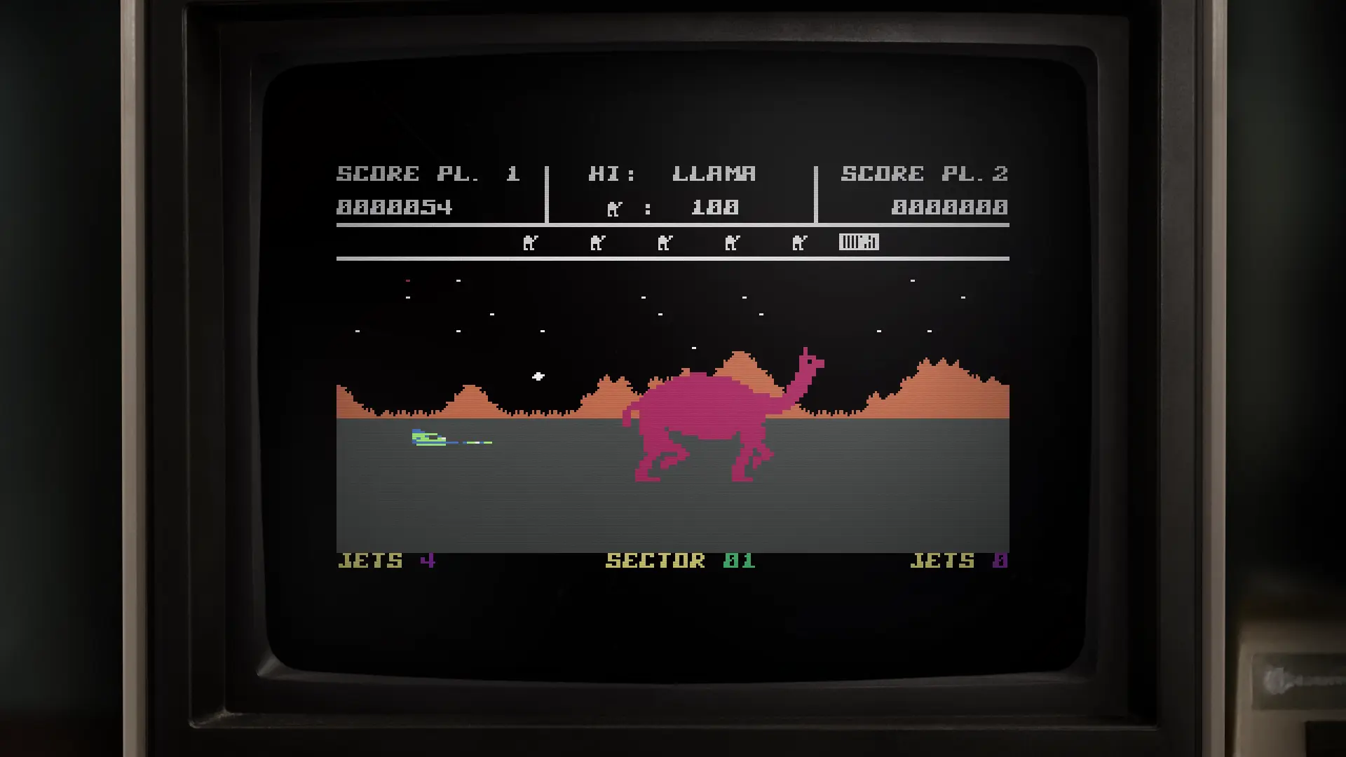 No więc konwój tych wielbłądzich abominacji kroczy powoli z lewej strony ekranu na prawą, gdzie znajduje się nasza baza, a my, jako jedyna nadzieja ludzkości, wskakujemy za stery myśliwca i ruszamy ostrzeliwać je tak długo, aż padną. Minter stwierdził przy tym, że grze wciąż brakuje szaleństwa, więc saharyjskie mutanty zostały przez kosmitów wzbogacone również o umiejętność plucia pociskami, wliczając w to takie samonaprowadzające. My mamy natomiast wyłącznie małe, ale zdecydowanie szybsze działko, co w połączeniu z całkiem sporą zwrotnością statku i osłoną, pozwalającą na przyjęcie bez konsekwencji jednej rakiety na klatę, wyrównuje szanse i czyni Attack of the Mutant Camels całkiem przystępną produkcją nawet dla osób, które nie wychowały się w bezlitosnych czasach automatów.
