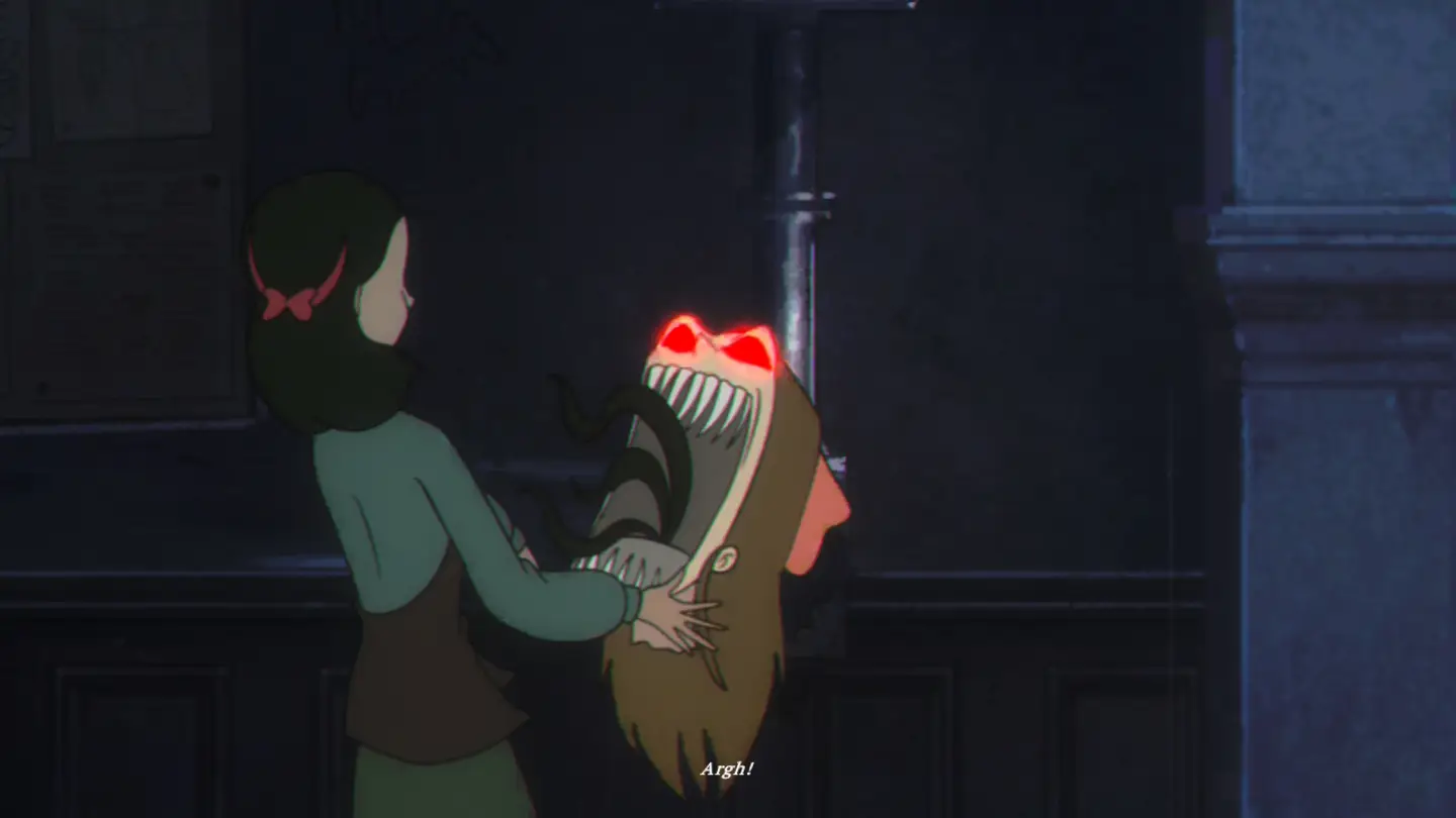 W teorii Bye Sweet Carole miało być horrorem. Przyznam, że jeżeli chodzi o projekty potworów, to studio zrobiło doskonałą robotę. Pomysły mieli wspaniałe, więc szkoda, że nie poszły za tym mechaniki oraz reszta pobocznych elementów. Niby mamy tutaj momenty, w których trzeba przed czymś uciekać czy gdzieś się schować, ale zarówno muzyka, jak i dźwięki temu towarzyszące w ogóle nie budują napięcia. Co więcej, przez bardzo toporne sterowanie, częściej byłem sfrustrowany niż przestraszony. Cieszy mnie, że tytuł robi autozapisy w dobrych momentach, bo nie wiem, ile razy Lana wpadła w łapy jakiejś maszkary, bo zamiast wspiąć się po schodach, radośnie pląsała w inną stronę.