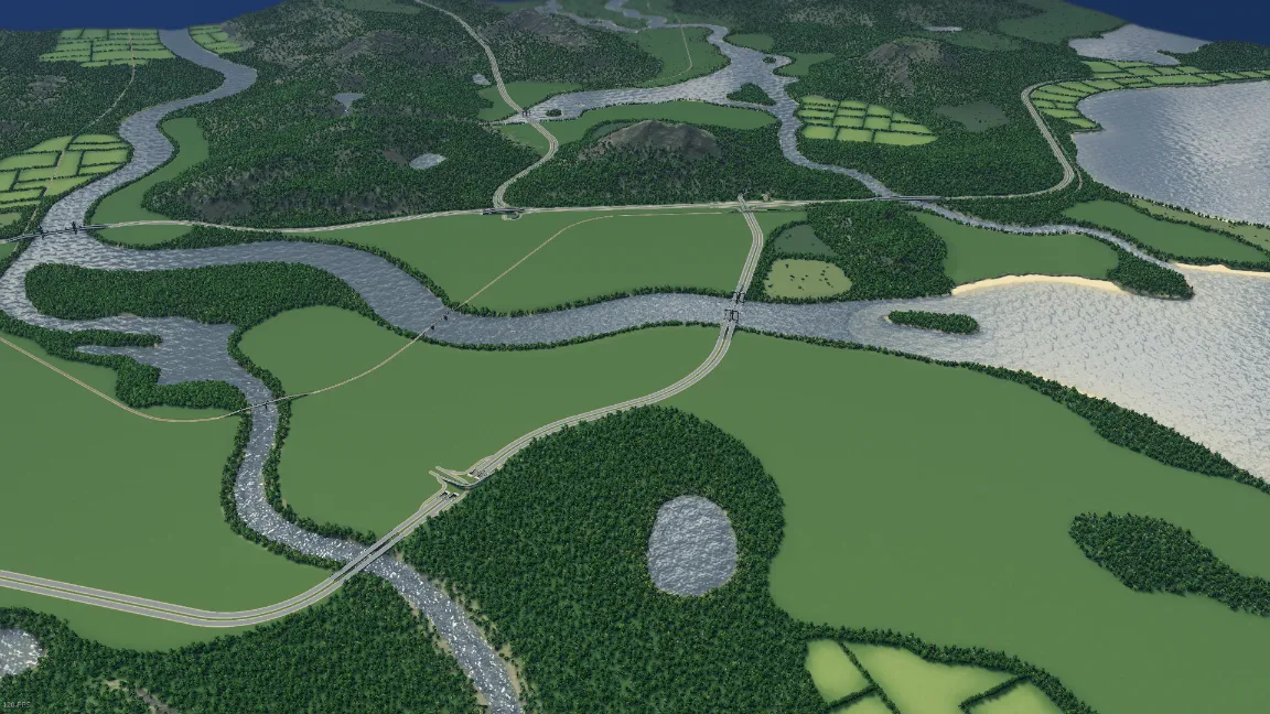 Jak sama nazwa wskazuje, jest to mapa charakteryzująca się praktycznie w całości płaskim terenem. Nie zabraknie połączeń kolejowych i lotniczych czy dostępności wszystkich zasobów naturalnych, a jej prosty projekt umożliwia graczom kreatywne podejście do budowy miasta. To z pewnością dobry wybór na sam początek, nawet dla mało doświadczonych budowniczych. Stworzona przez użytkownika Mulleboy.