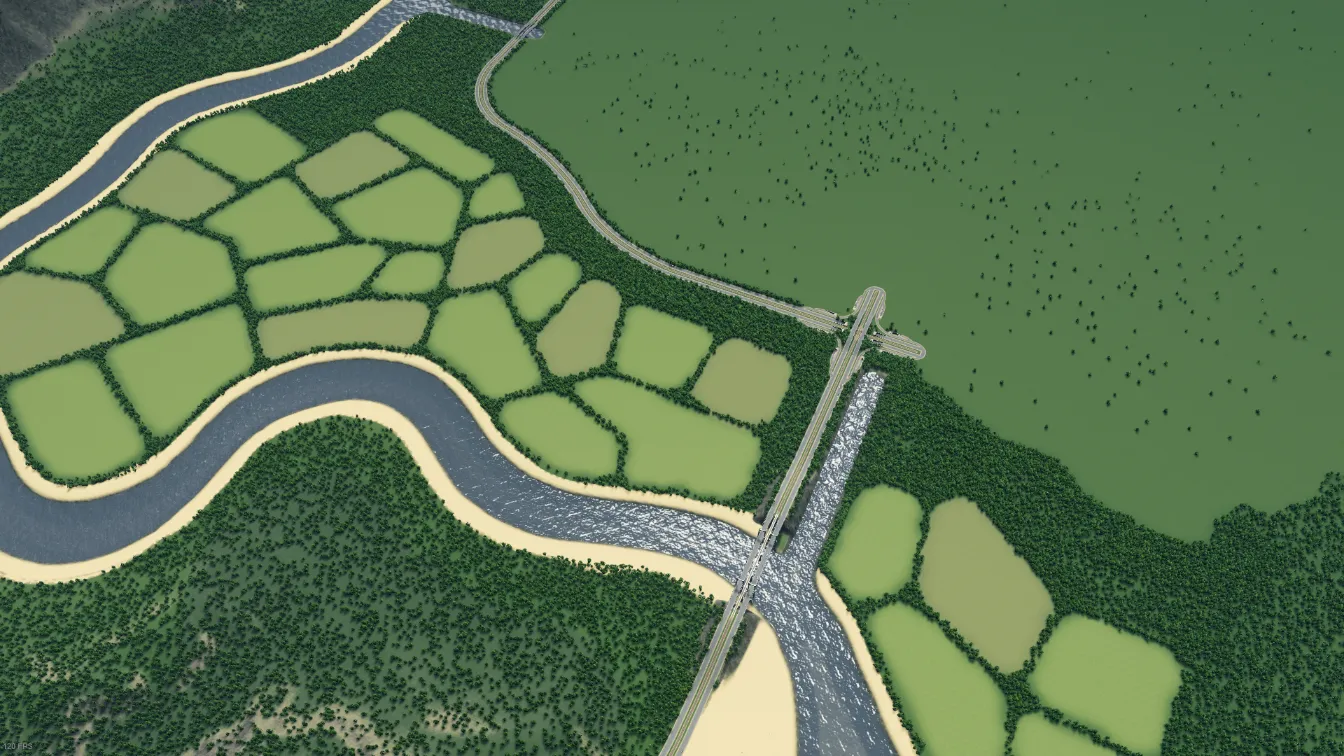 Użytkownik Khanador proponuje na swoim Riverlands sporo terenów uprawnych i płaską przestrzeń pod budowę rozległego miasta. Znajdziemy wszystkie zasoby, połączenia komunikacyjne oraz wiele źródeł wody. Częściowa obecność niewielkich wzniesień urozmaica nieco ukształtowanie terenu i ze względu na ich wysokość nie powinna być szczególnie uciążliwa.