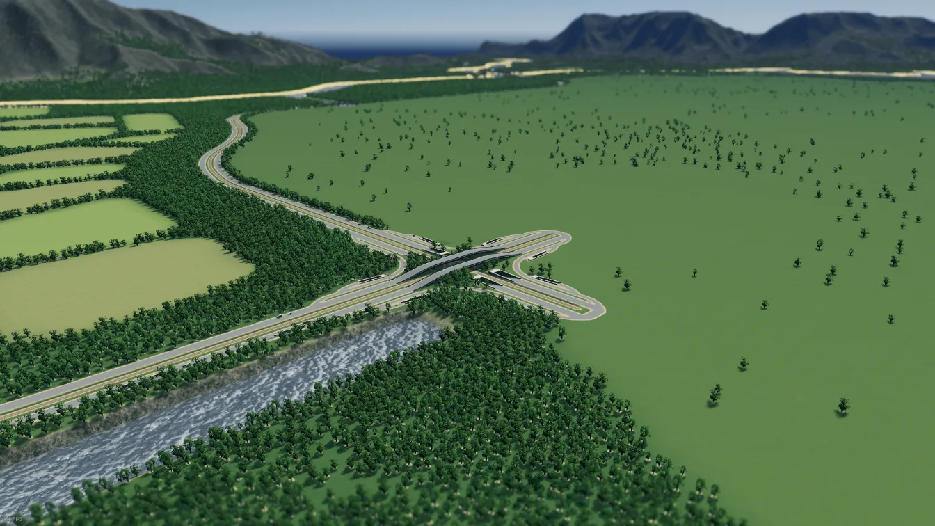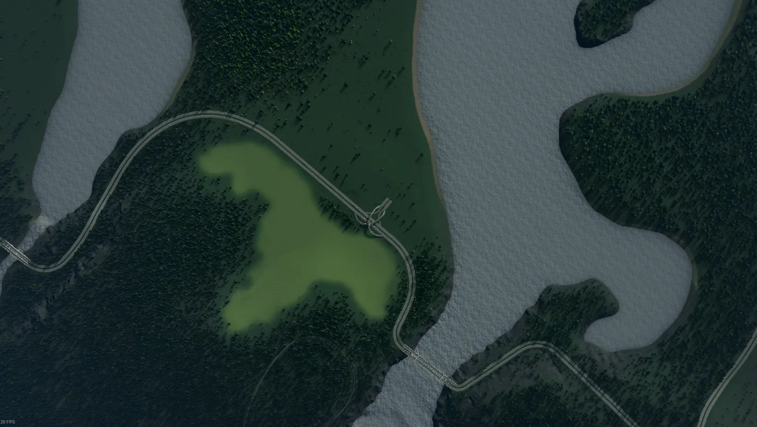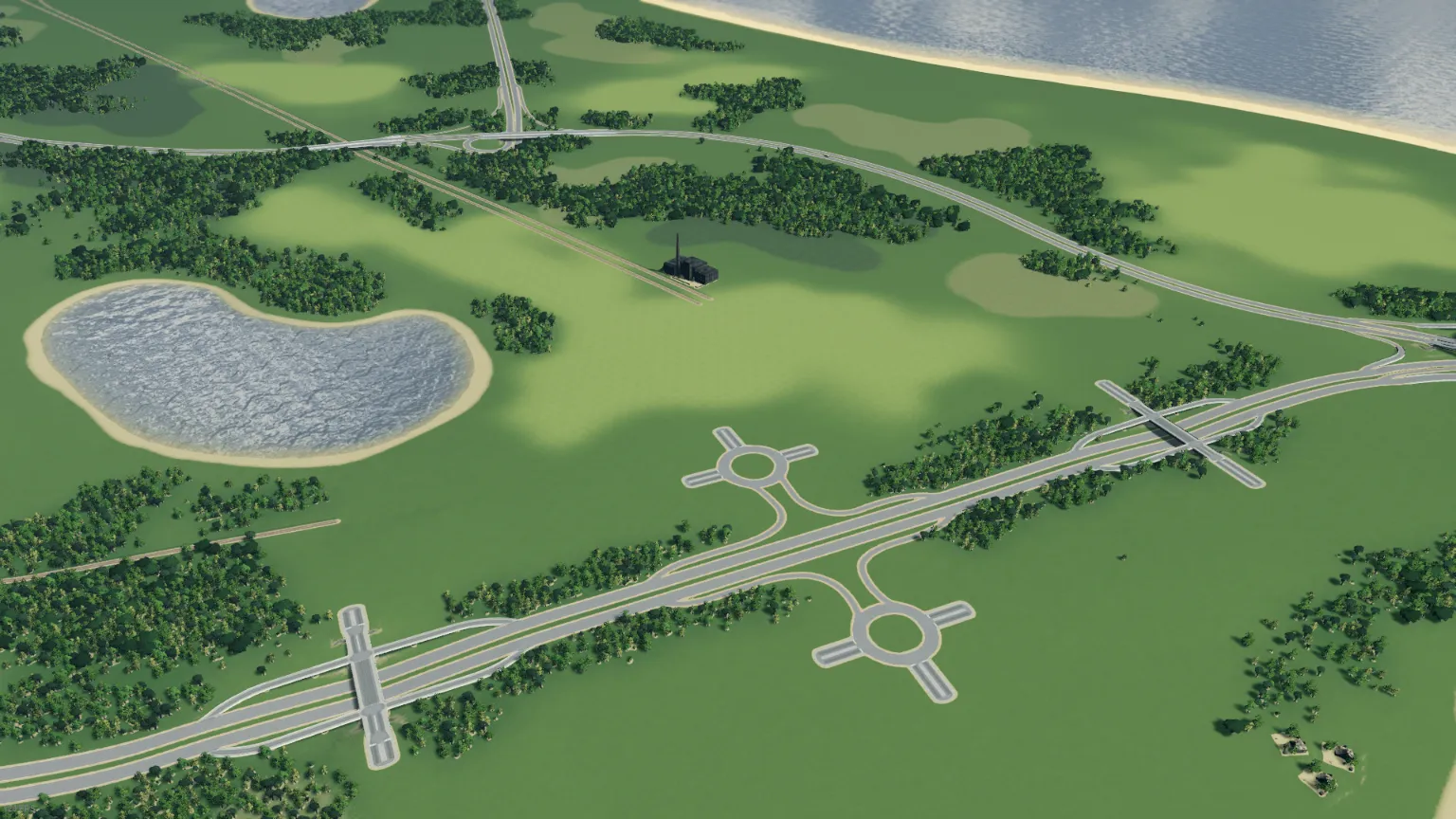 Użytkownik Bugfix także przygotował dobrą dla nowych graczy propozycję, choć ta może stanowić minimalnie większe wyzwanie niż poprzedniczki. Mapa wyróżnia się sporą ilością wody, a także położeniem przy brzegu morza i biegnącą wzdłuż niego autostradą. Może wymagać nieco bardziej przemyślanej budowy infrastruktury. Teren nie jest całkiem płaski, jednak nadal nie powinien sprawiać szczególnych problemów początkującym. Jak każda z wcześniej przedstawionych map, zawiera wszystkie zasoby i połączenia zewnętrzne.