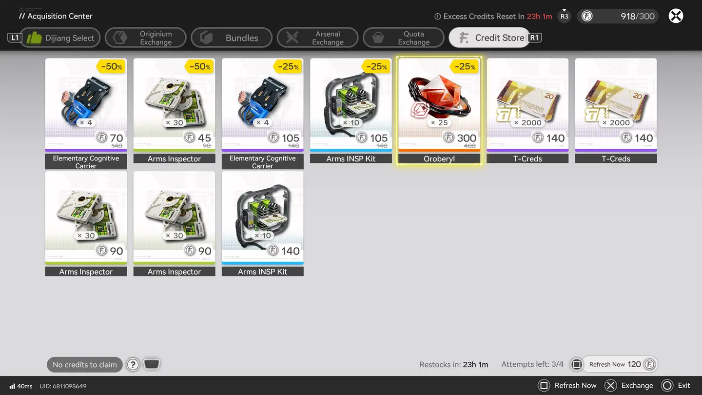 Kiedy zakończymy naszą przebieżkę, czas w końcu zerknąć do zakładki, w której wydamy wspomniane wcześniej kredyty. Temat ten zostawiłem na koniec, gdyż warto mieć ich jak najwięcej. Powody są dwa. Po pierwsze wśród oferowanych towarów możemy trafić na waluty potrzebne do losowania zarówno postaci, jak i broni. Po drugie system ten pozwala nam odświeżać propozycje kilkukrotnie, więc mamy więcej szans na złapanie sensownych przedmiotów. Zalecam także nie kupować nic, co nie jest akurat przecenione, chyba że jest Wam wyjątkowo potrzebne. Ostatnim krokiem jest wykorzystanie przynajmniej części punktów Sanity, aby nie doprowadzić do ich przepełnienia.