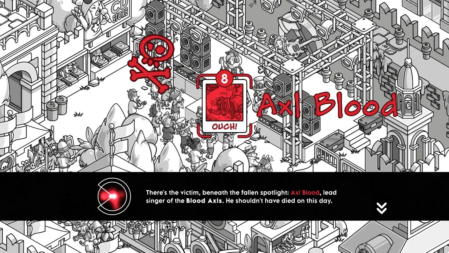 No ogromną pochwałę zasługuje natomiast oprawa graficzna Crime O’Clock. Światy są pełne szczegółów, a wszytko jest niezwykle wyraźne nawet przy maksymalnym przybliżeniu. Jestem pewny, że wiele pracy zostało włożone w każdy rysunek. Nawet menu główne wygląda imponująco. Pomimo tego, że cała gra jest w większości czarno biała, odrębne elementy dosłownie wyskakują z ekranu. Gdyby nie wspomniane problemy z historią mógłbym patrzeć się na to wszytko godzinami.