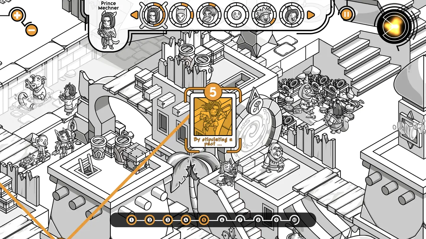 Aby łatwiej było zrozumieć problem, przydałoby się wyjaśnić, w jaki sposób wygląda postęp na każdej planszy. Światy podzielone są na dziesięć stop klatek, podczas których ludzie, przedmioty i wydarzenia zmieniają swoje położenie. Manipulując czasem, musimy szpiegować poczynania postaci, śledzić jakiś kluczowy obiekt lub sprawdzić jak doszło do konkretnego wydarzenia.