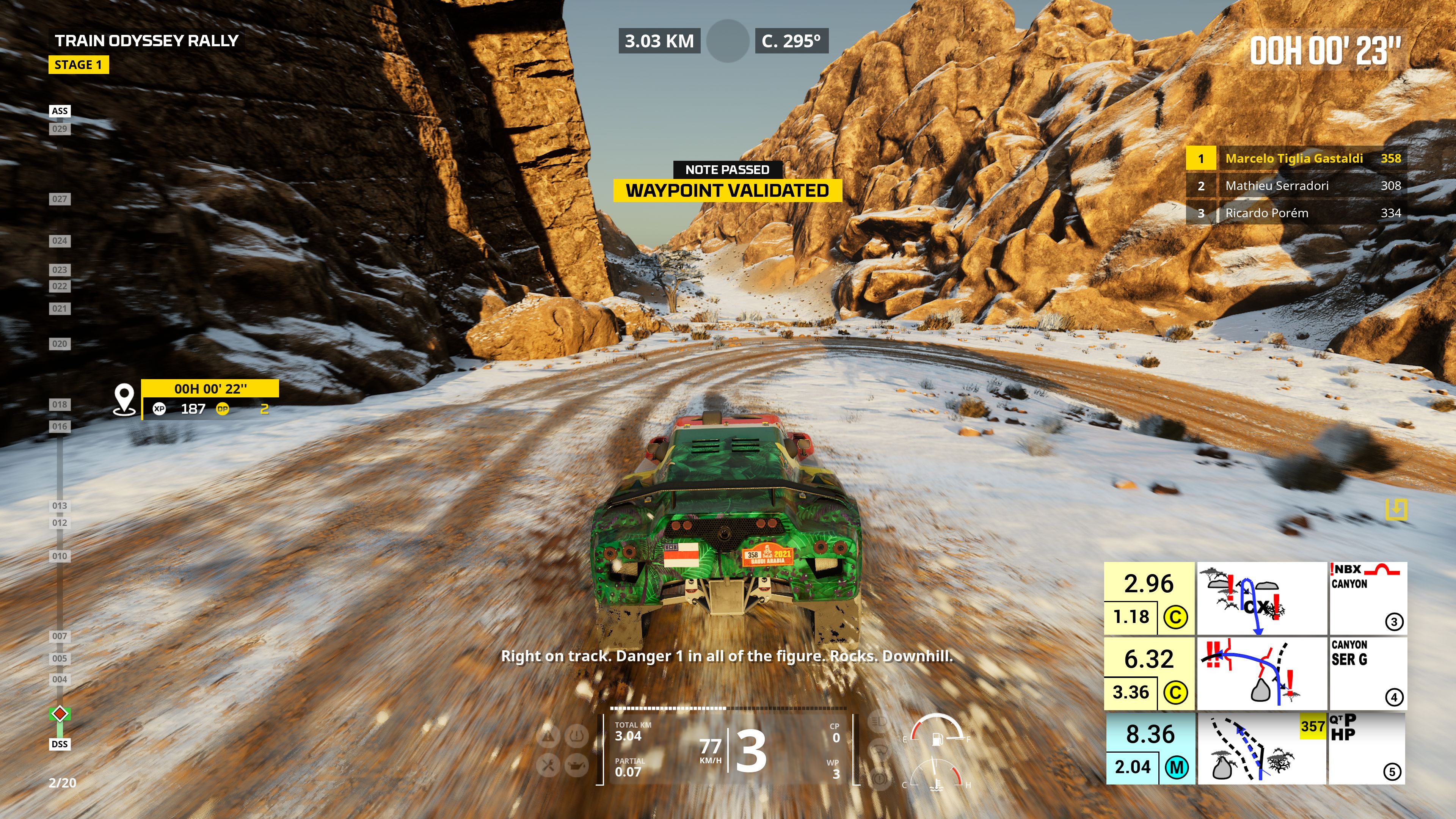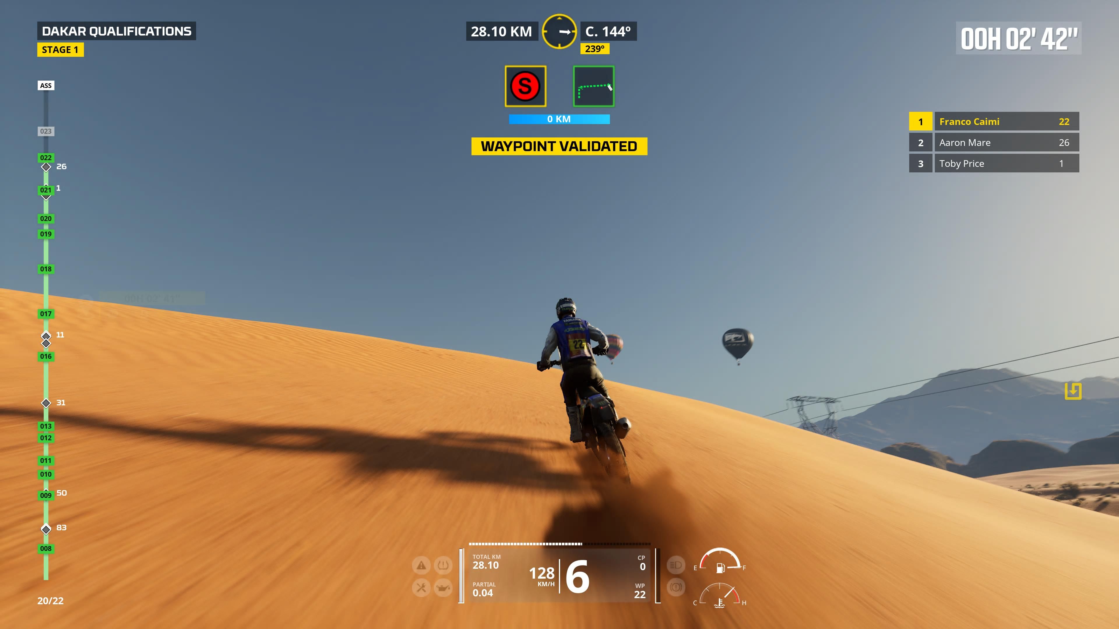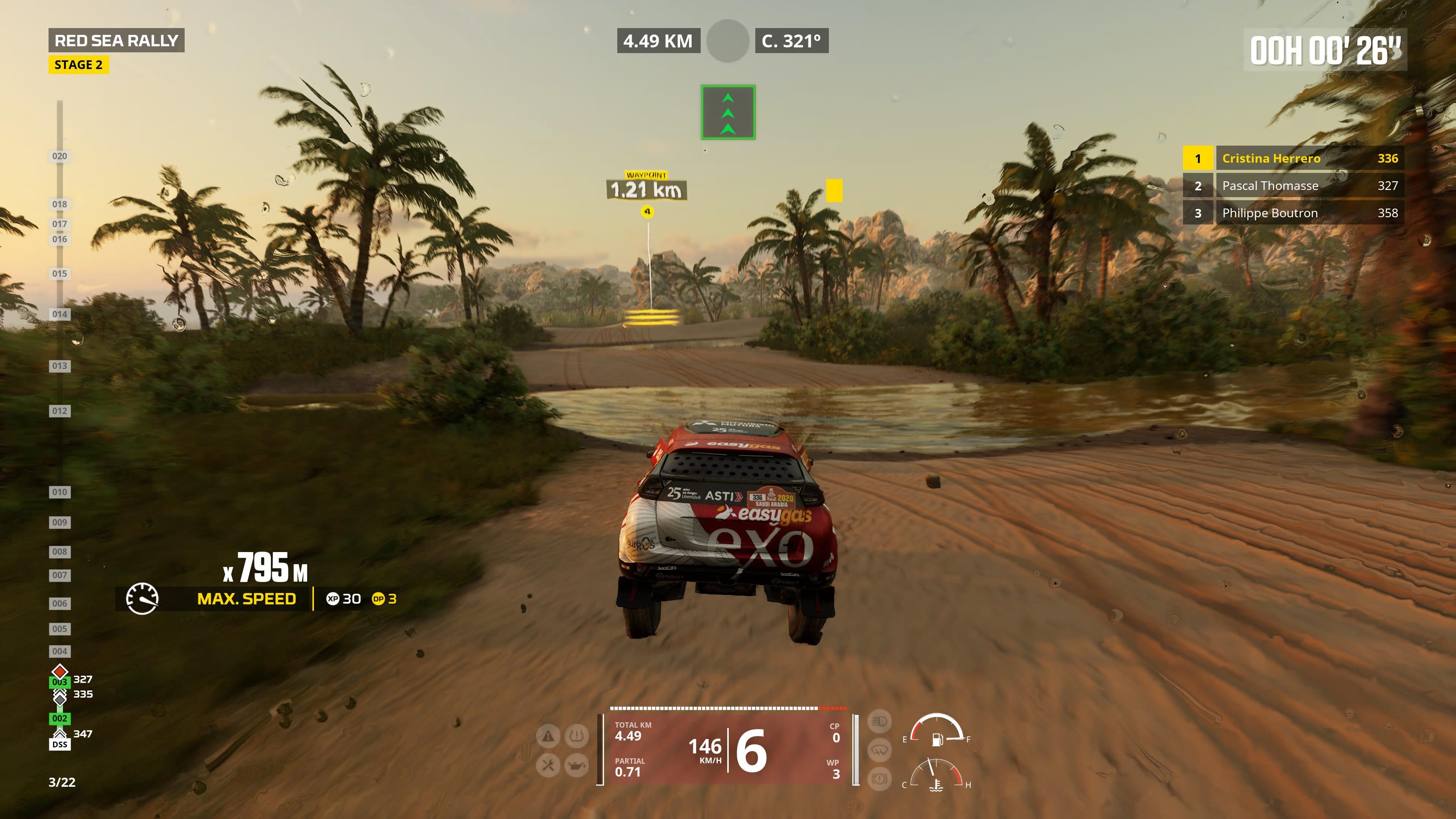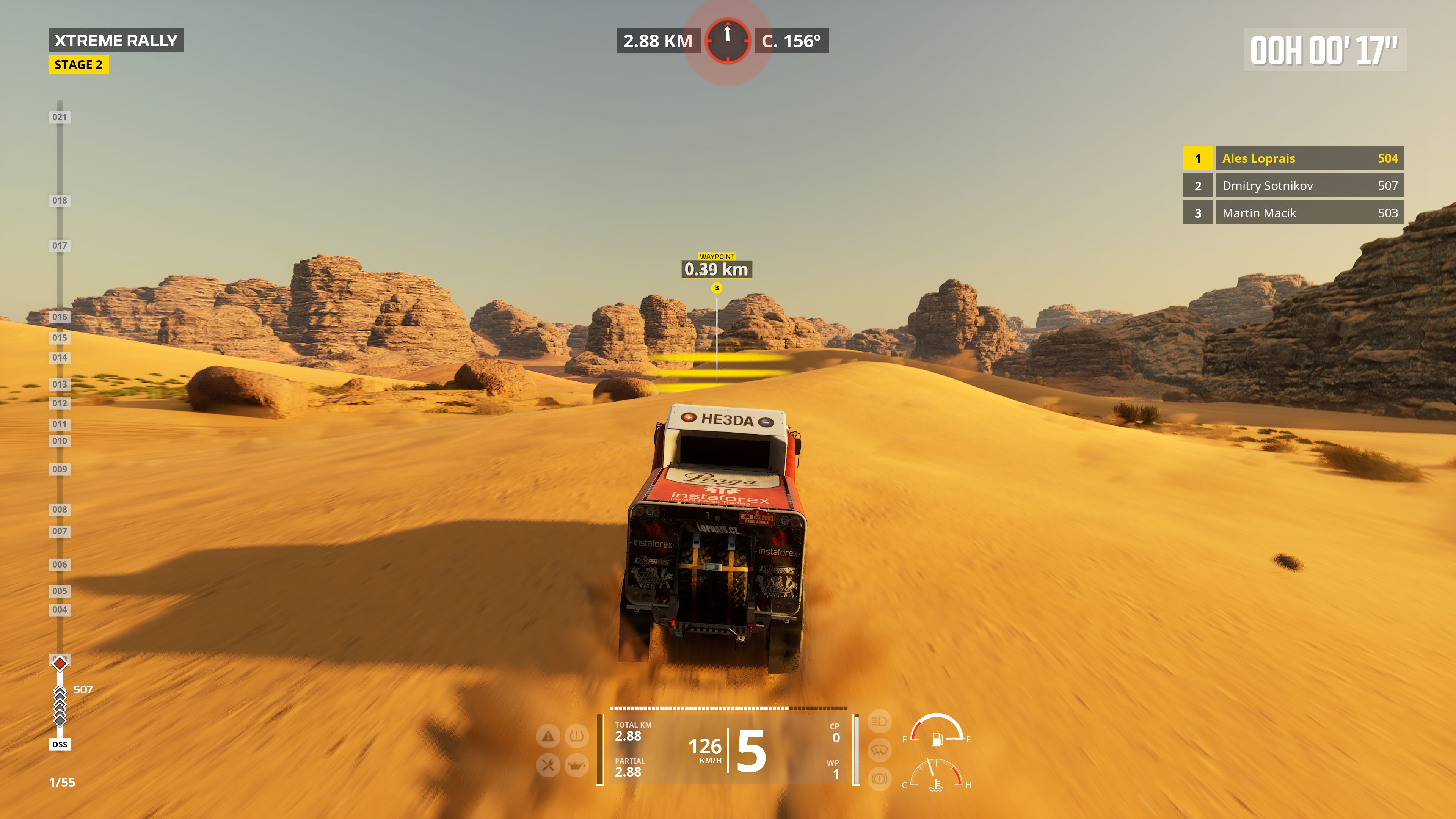 Podoba mi się też fakt, że Dakar Desert Rally jest w ogóle podzielone na tryby mniej i bardziej symulacyjne. Gracze sami mogą wybrać intensywność wyzwania, co przekuwa się z pewnością na czas spędzony z produkcją. Najbardziej śmiali porwą się na opcję Simulation. Okropnie długie odcinki specjalne, znacznie większe kary czasowe za pomijanie checkpointów oraz niebywała satysfakcja z ukończonych etapów. Tutaj polecam szczególnie spojrzeć na fragment rozgrywki pod recenzją. Jedna z moich pierwszych prób w trybie profesjonalnym pokazała, że do perfekcji czekała mnie jeszcze długa droga, pomimo wieloletniego doświadczenia w grach wyścigowych.