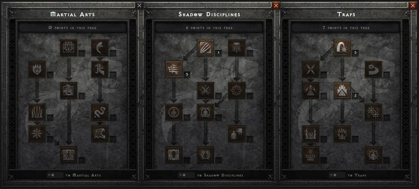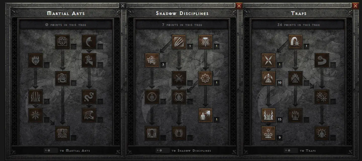 Skoro wiemy już, jaką specjalizacją będziemy grać, warto omówić podstawowe informacje dotyczące statystyk i drzewka umiejętności oraz ich priorytetowego rozwijania. Zabójczyni bazuje przede wszystkim na szybkości ataku broni. Na początek warto zdobyć broń – najlepiej sztylet lub kozik – z affixem „bardzo duża szybkość ataku”, co pozwoli szybciej rozstawiać pułapki i siać chaos wśród przeciwników.