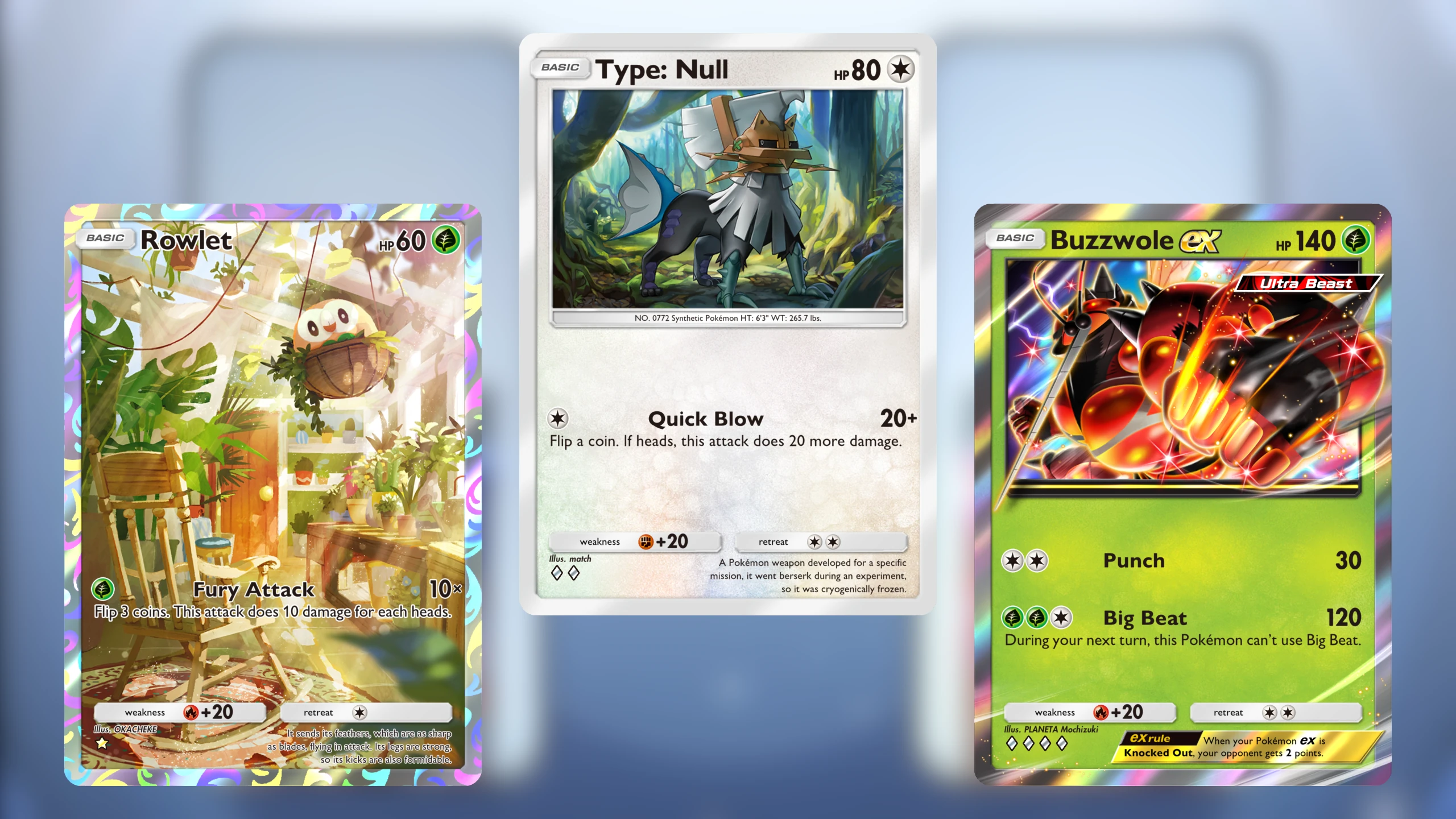 W nadchodzącym rozwinięciu gracze mogą złapać Ultra Bestie, takie jak Buzzwole ex, Blacephalon, Nihilego czy Guzzlord ex. Jestem pewny, że trenerzy z całego świata chętnie dodadzą do swojej kolekcji te tajemnicze formy życia z innego świata. Powiem szczerze, że nie grałem nigdy w serię Sun and Moon, ale niektóre z tych stworów wyglądają naprawdę przepięknie. Ponadto do i tak już szerokiej puli zwierzaków dołączy więcej Pokemonów z regionu Alola, w tym debiutujący Type: Null. Według mnie nazwa dziwna, ale sama ilustracja całkiem nieźle się prezentuje. W końcu nie każdy może pochwalić się takim wypasionym hełmem.