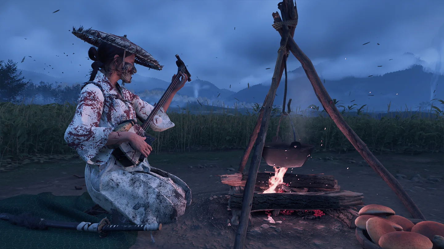 Dużo mniej natomiast podoba mi się losowość potrzebna do wbicia platyny, którą to mam na koncie w momencie pisania recenzji. W czym problem? Ano w tym, że potrzebne jest do niej nauczenie się wszystkich utworów na shamisenie, a jeden z nich zablokowany jest za nową aktywnością, obozem. Otóż w prawie każdym miejscu na mapie możemy takowy rozbić, by zregenerować siły i wytworzyć amunicję. Zdarza się, że podczas pobytu dołączą do nas różne postaci, wspomniany element losowości, a od jednej z nich nauczymy się właśnie tego utworu. Wiem, nie każdy zbiera platyny, ale i tak jej odblokowanie nie powinno kryć się za RNG.