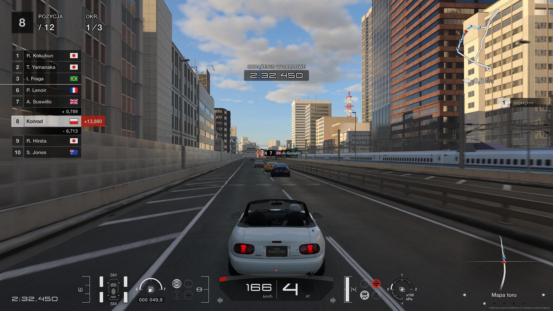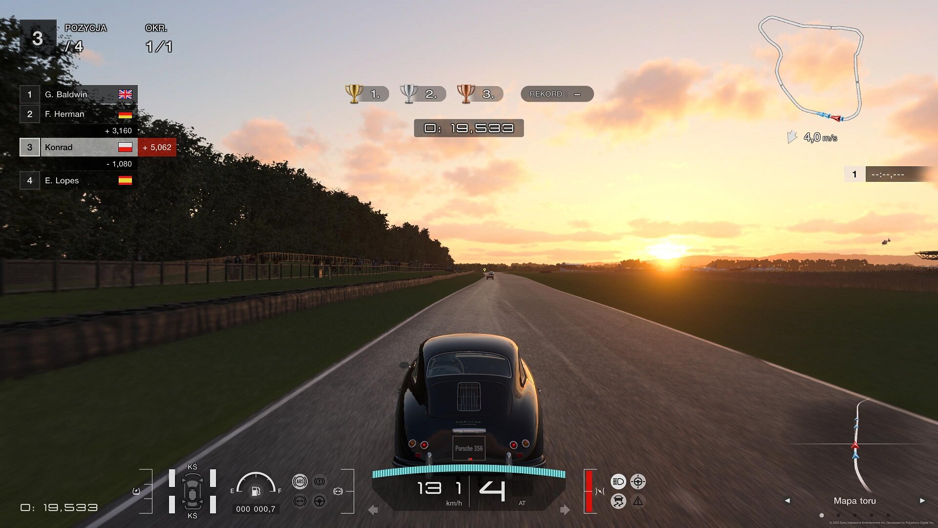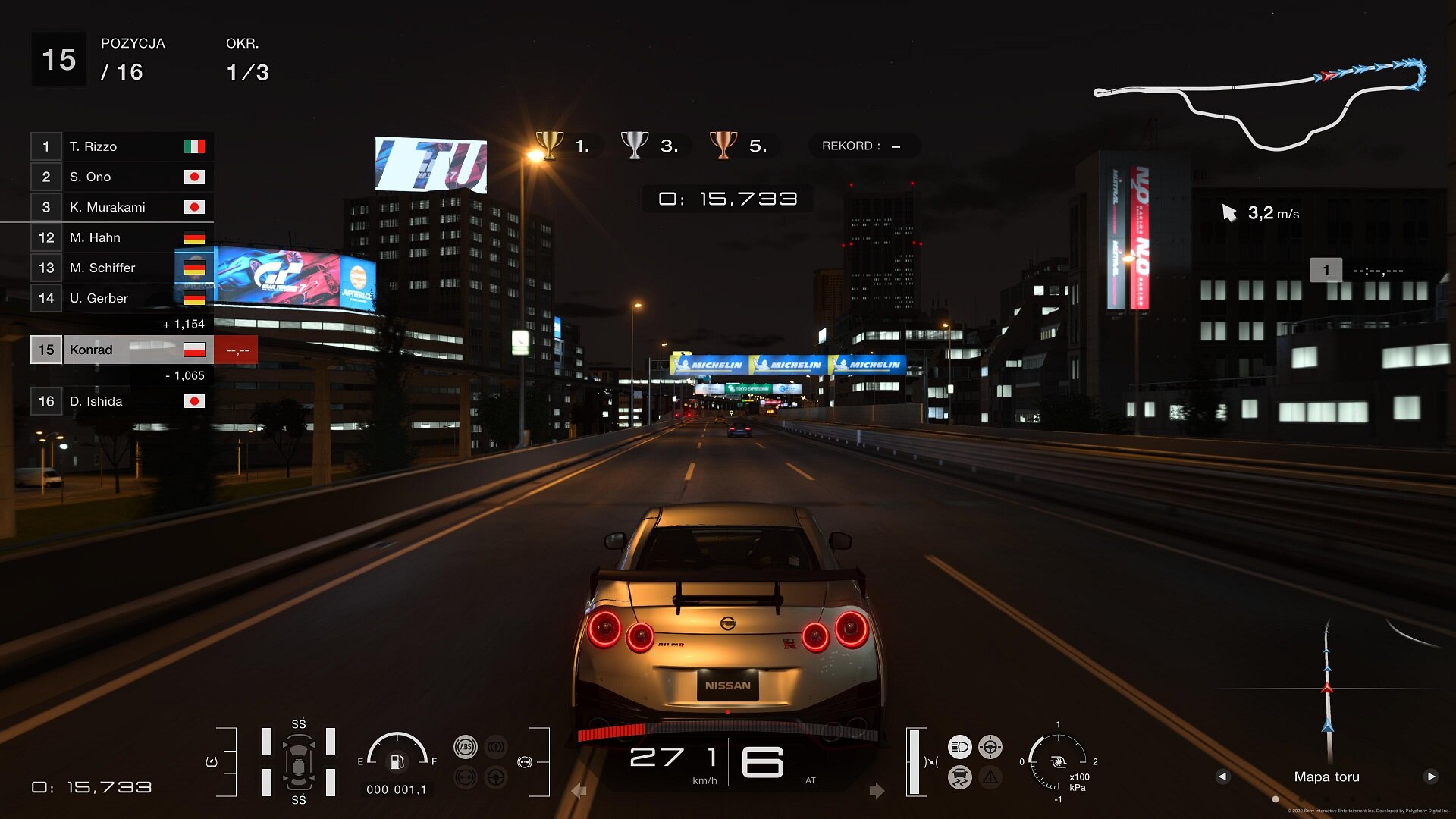 Zdecydowanie lepiej bawiłem się zatem w licznych trybach dla pojedynczego gracza. Poza GT Café mogłem wykazać się w uczącej mniej lub bardziej zaawansowanych technik w szkole jazdy oraz spróbować swoich sił w specjalnych wyzwaniach – od zaliczenia pełnego okrążenia z pustym bakiem po kilkugodzinne wyścigi wytrzymałościowe. Wisienką na torcie są natomiast rajdy muzyczne, stawiające przed graczem zadanie przejechania jak największej odległości nim upłynie czas, odmierzany przez takty przygrywającej w tle muzyki. Świetny pomysł, więc strasznie boli mnie, że przez niemalże rok tryb ten nie doczekał się żadnych nowych utworów.