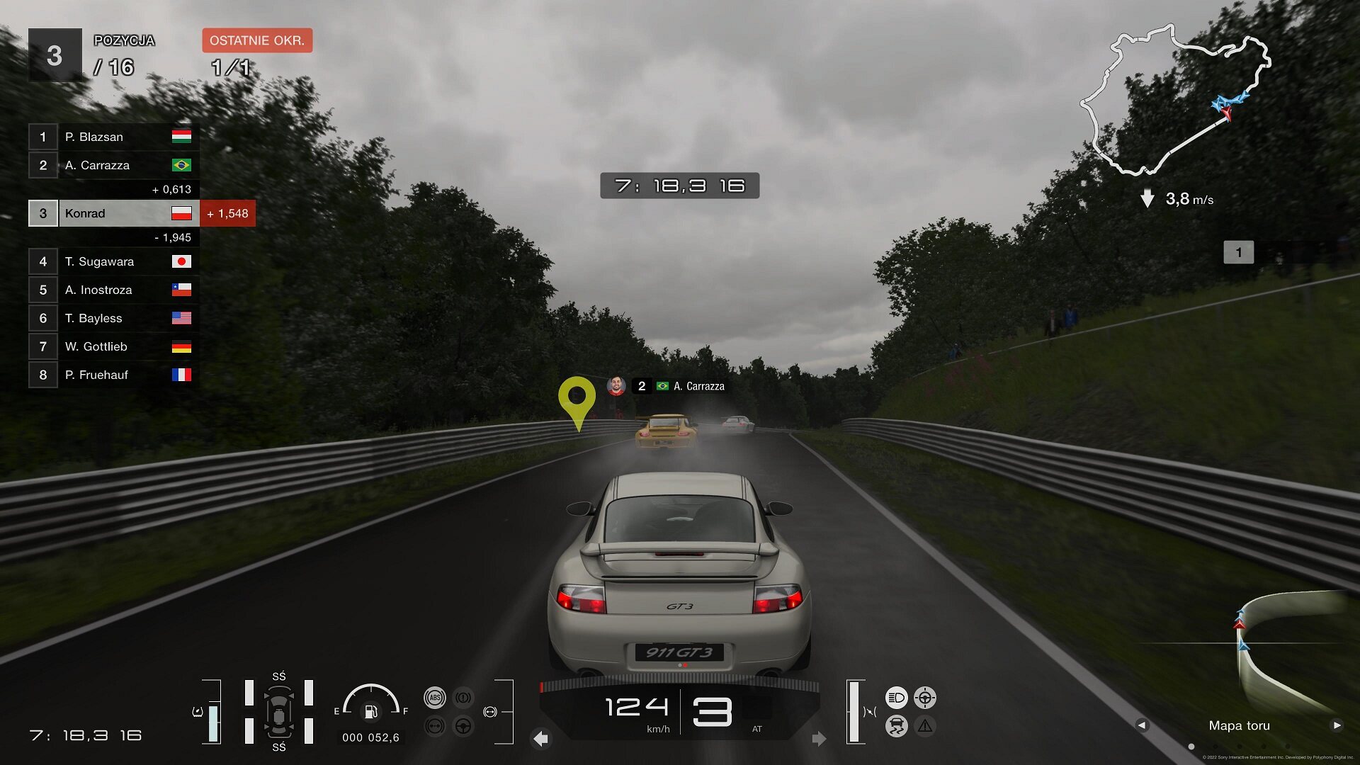 Osobiście nie jestem jednak fanem trybu sieciowego w Gran Tursimo 7. Wyraźnie czuć, że jest nastawiony na „profesjonalną” rozgrywkę. Jak najbardziej ma to sens, ale w efekcie gracze mojego pokroju, którzy chcą przejechać kilka szybkich rundek, mogą poczuć rodzącą się frustrację. Wyścigi nie są bowiem kreowane na bieżąco z puli chętnych graczy. Wręcz przeciwnie, to gracze zapisują się do startujących co dziesięć minut wyścigów.