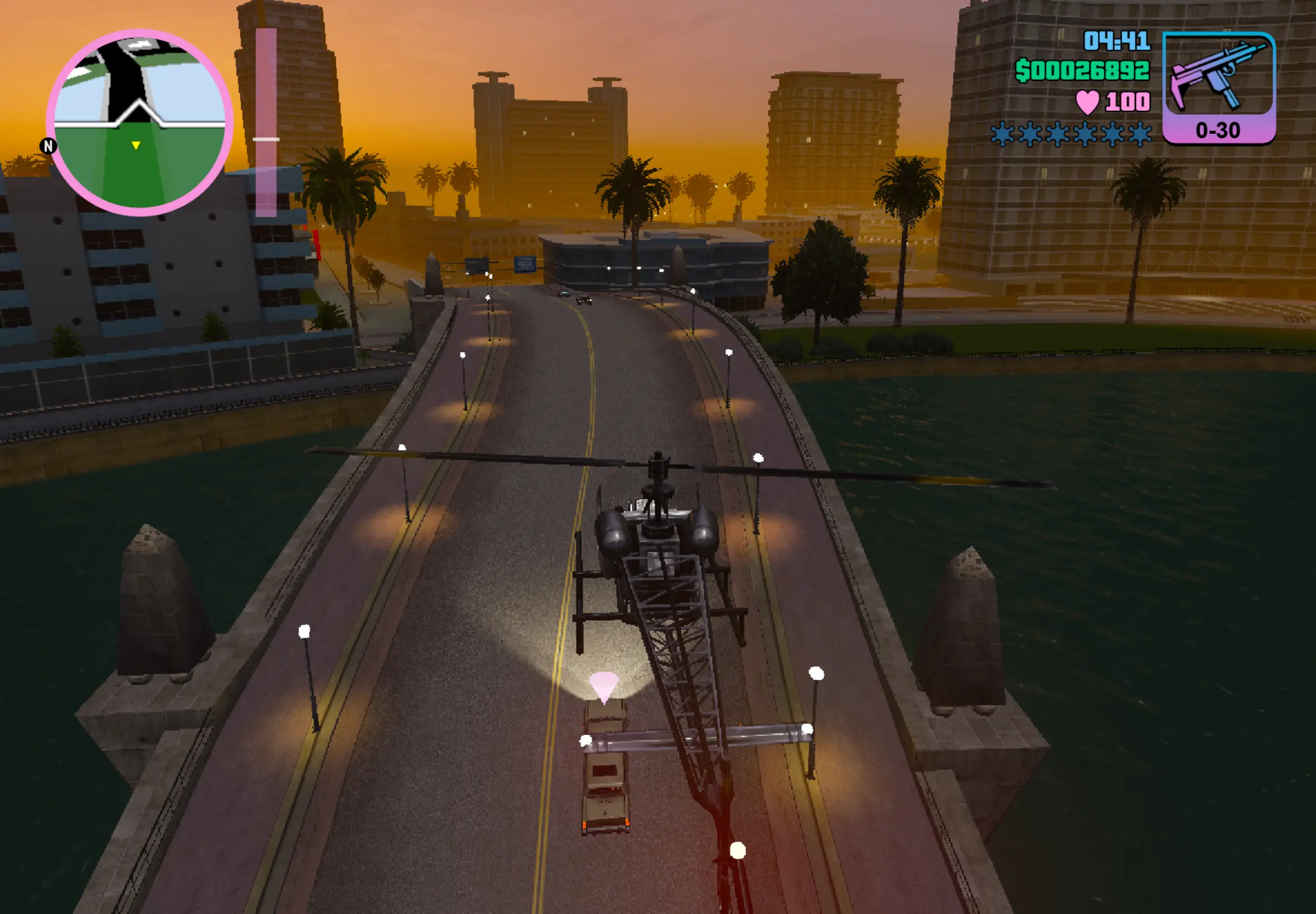 Genialną robotę robi przede wszystkim klasyczne oświetlenie, które pozwala cieszyć się teraz przepięknymi, bijącymi pomarańczem wschodami i zachodami słońca, spowijającą wszystko w miękkim brązie mgłą czy też po prostu śliczną, słoneczną pogodą. Przyznać oczywiście trzeba, że Vice City z całej tej pokracznej trylogii oberwało pod kątem artystycznym najmniej. Zawsze była to kolorowa produkcja, więc neutralne oświetlenie z ich wersji pasowało do pełnego barw Vice City całkiem nieźle. O ile jednak wizja Grove Street Games po prostu nie kolidowała z klimatem neonowego miasta, oferta Video Games Deluxe potęguje jego przepiękny klimat i sprawia, że naprawdę trudno jest się w nim nie zakochać.