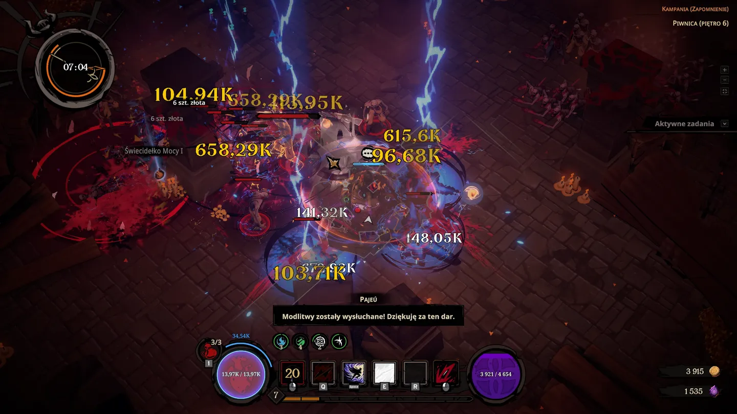 Najbardziej intrygującym elementem Hell Clock jest sposób, w jaki gra splata historię z mechaniką. Każde zejście jest metaforyczną próbą naprawienia dawnych krzywd i konfrontacją z duchami przeszłości, teraźniejszości, a nawet alternatywnych przyszłości Brazylii. Fabułę zwieńcza trzyaktowa kampania, po której czeka endgame w postaci systemu „Końcowego Wniebowstąpienia”. Do tego dochodzą tryby dodatkowe – możliwość wyboru spokojniejszej, narracyjnej ścieżki w trybie Relaksu albo maksymalnie wymagającej w trybie Hardcore. To bogactwo opcji sprawia, że każdy znajdzie tu coś dla siebie, a regrywalność zdecydowanie należy do największych zalet produkcji.