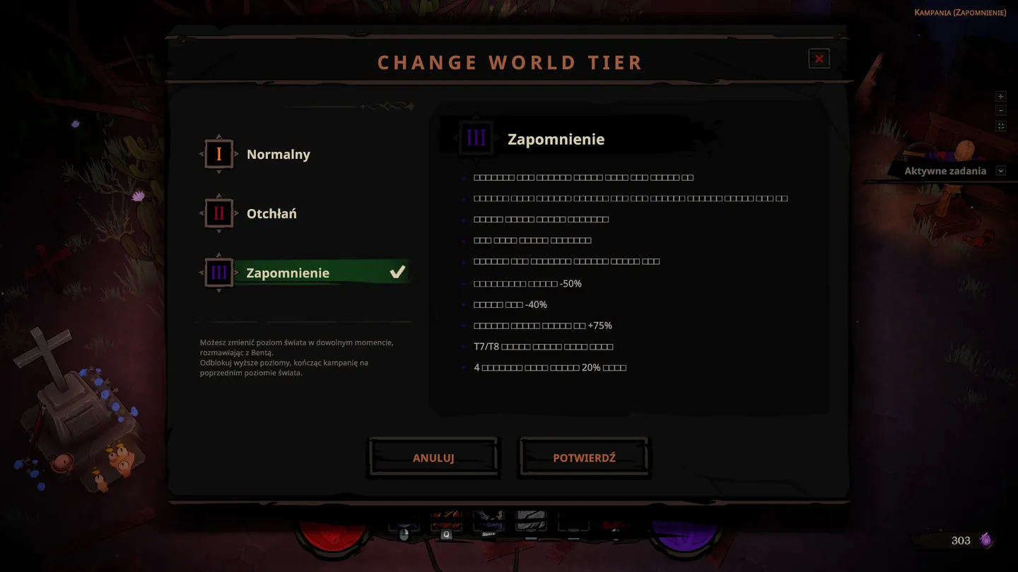 Jeśli jednak nie jesteś fanem tego typu rozgrywki, ale masz ochotę poszerzyć swoje growe horyzonty, również polecam ten tytuł – choć nie w obecnej chwili. Mam tutaj duży zarzut do twórców – gra znajduje się obecnie w fazie bety lub wczesnego dostępu, a o tym nie informują w karcie na Steamie. Dopiero po ukończeniu kampanii fabularnej i dotarciu do planszy z endgame/endlessem pojawia się monit o tym fakcie. Co więcej, występuje niedoróbka w polskiej lokalizacji – brakuje zaimplementowanej czcionki dla polskich znaków, które zostają zastąpione przez liczby i kwadraty. Dlatego wstrzymałbym się z zakupem do czasu ukończenia gry. Warto jednak zaznaczyć, że twórcy cały czas rozwijają ten tytuł, a sama gra została wyceniona – moim zdaniem uczciwie – na 75 złotych. Nawet teraz spędziłem przy niej około 20 godzin.