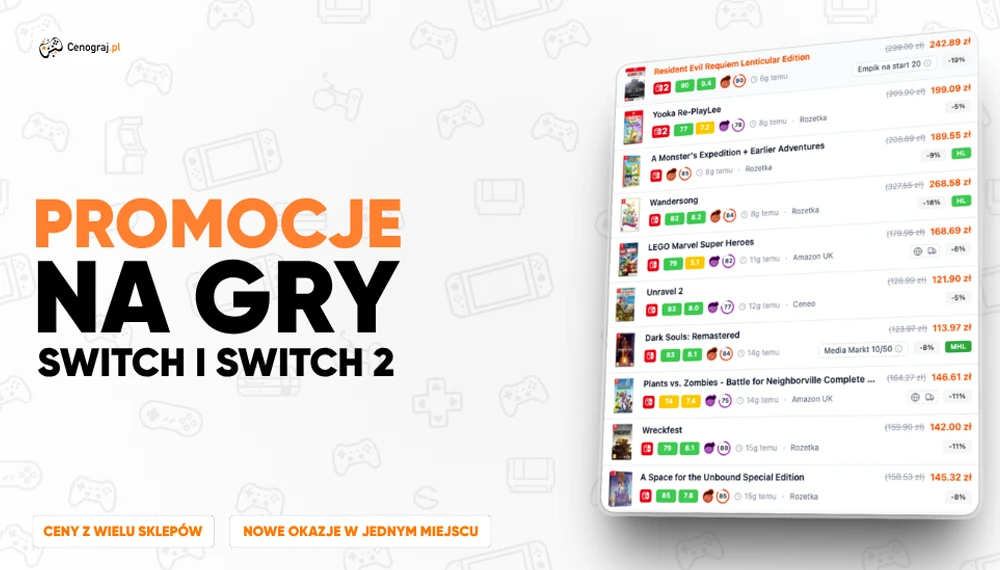 Kupowanie gier na Nintendo Switch już dawno przestało polegać na tym, żeby od czasu do czasu zajrzeć do jednego sklepu i sprawdzić, czy akurat pojawiła się obniżka. Dziś ten sam tytuł może kosztować zauważalnie inaczej w zależności od sklepu, rodzaju wydania czy czasu trwania promocji. Z perspektywy gracza oznacza to jedno: łatwo kupić za wcześnie albo przeoczyć lepszą ofertę.