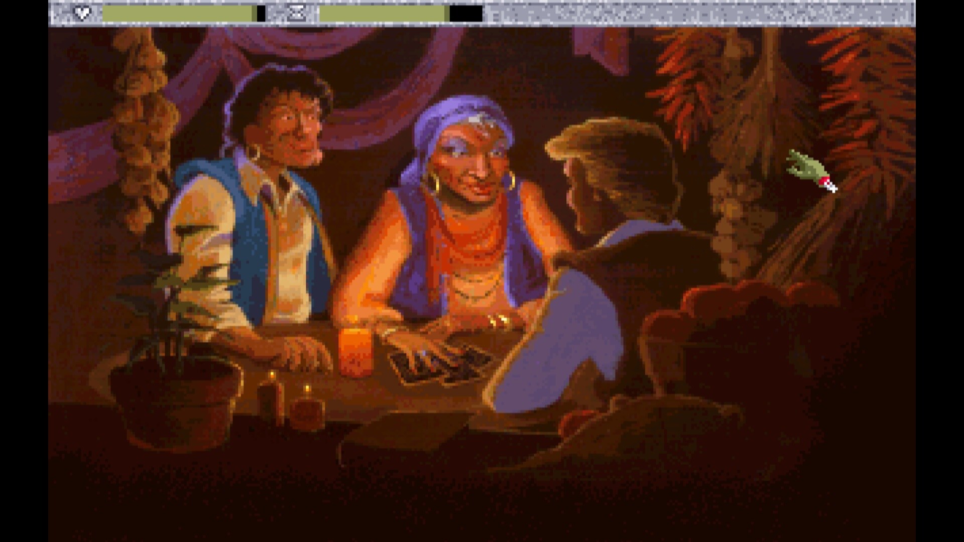 Sporą nowością w kontekście narracji jest natomiast fakt, że Quest for Glory: Shadows of Darkness to pierwsza w pełni udźwiękowiona odsłona serii. W przepięknie fatalnej jakości można tu zatem usłyszeć chociażby nieznanego jeszcze z roli Gimliego Johna Rhysa-Daviesa jako narratora, a także debiutującą wówczas, choć cenioną dziś przez wszystkich fanów Mass Effecta Jennifer Hale. To zdecydowanie miła nowość, ale mam też wrażenie, że scenarzyści zachłysnęli się nową technologią i postanowili znacząco zwiększyć liczbę dialogów. W efekcie zmuszeni jesteśmy do słuchania (lub czytania, bo dubbing można wyłączyć) przydługawych i raczej średnio zajmujących monologów napotkanych postaci.