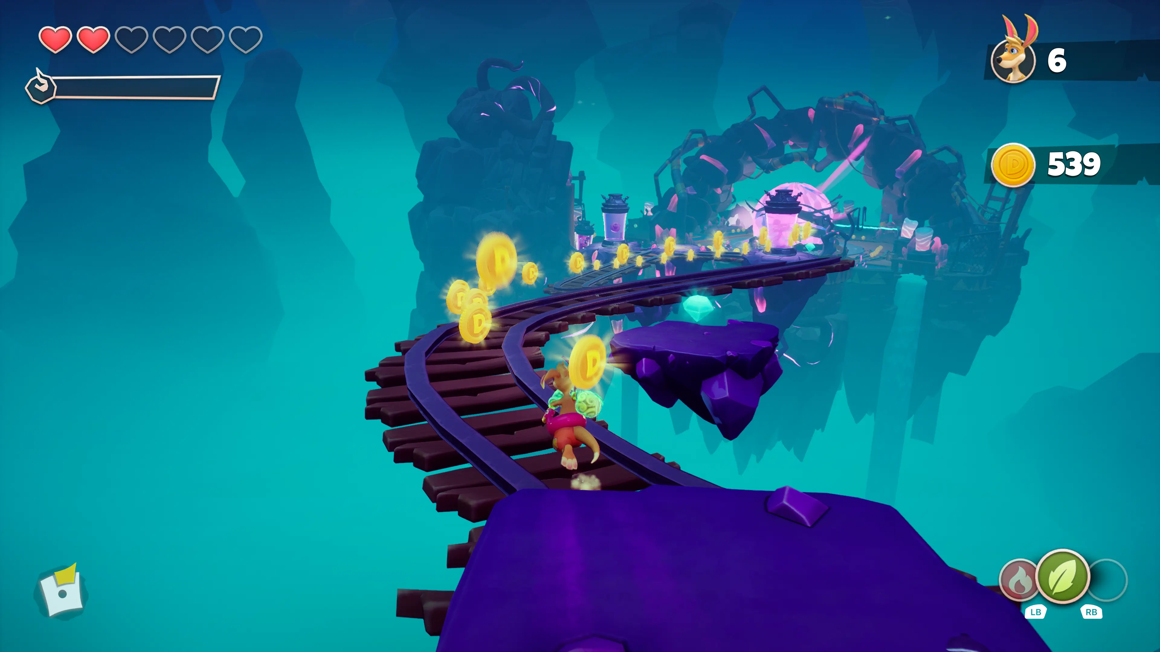 Miałoby to o tyle więcej sensu, że Kangurek Kao dysponuje dość otwartą strukturą. Gra składa się z kilku baz wypadowych, w których za znajdowane na kolejnych poziomach runy odblokowujemy nowe poziomy. Te zaś obfitują licznymi pobocznymi ścieżkami, w których ukryto skarby (głównie monety, ale znalazło się również miejsce dla literek K-A-O i bezwartościowych diamentów). Część z tych zakamarków mogłaby być dostępna wyłącznie po nauczeniu się odpowiedniego ruchu, co zachęcałoby do powracania do już zaliczonych poziomów, zwłaszcza że i tak możemy to już robić, by pozbierać fanty. Te z kolei nie mają w większości żadnej wartości. Wyjątkiem są wspomniane runy i hurtowe ilości monet, które wydać możemy w zlokalizowanym w każdym hubie sklepiku na fragmenty serduszka (cztery zwiększają zdrowie o jedno serce), dodatkowe życia lub nowe fatałaszki o wartościach czysto kosmetycznych.