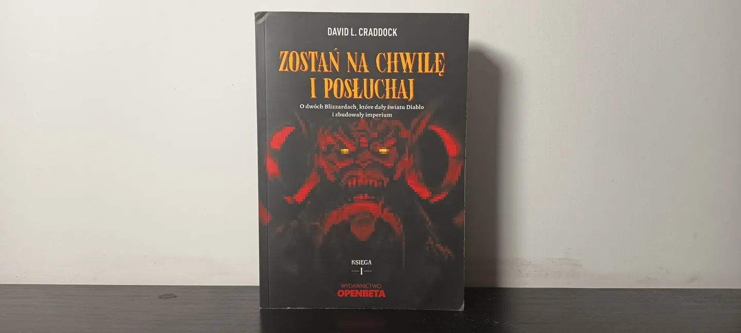 Będąc jeszcze w tematyce cRPG-ów, chciałbym polecić Wam książkę „Zostań na chwilę i posłuchaj. O dwóch Blizzardach, które dały światu Diablo i zbudowały imperium” autorstwa Davida L. Craddocka, wydaną przez Open Beta. To historia powstawania Diablo w formie opowieści o sukcesie, zderzeniu kultur, ambicji i marzeń, które zmieniły branżę gier wideo.