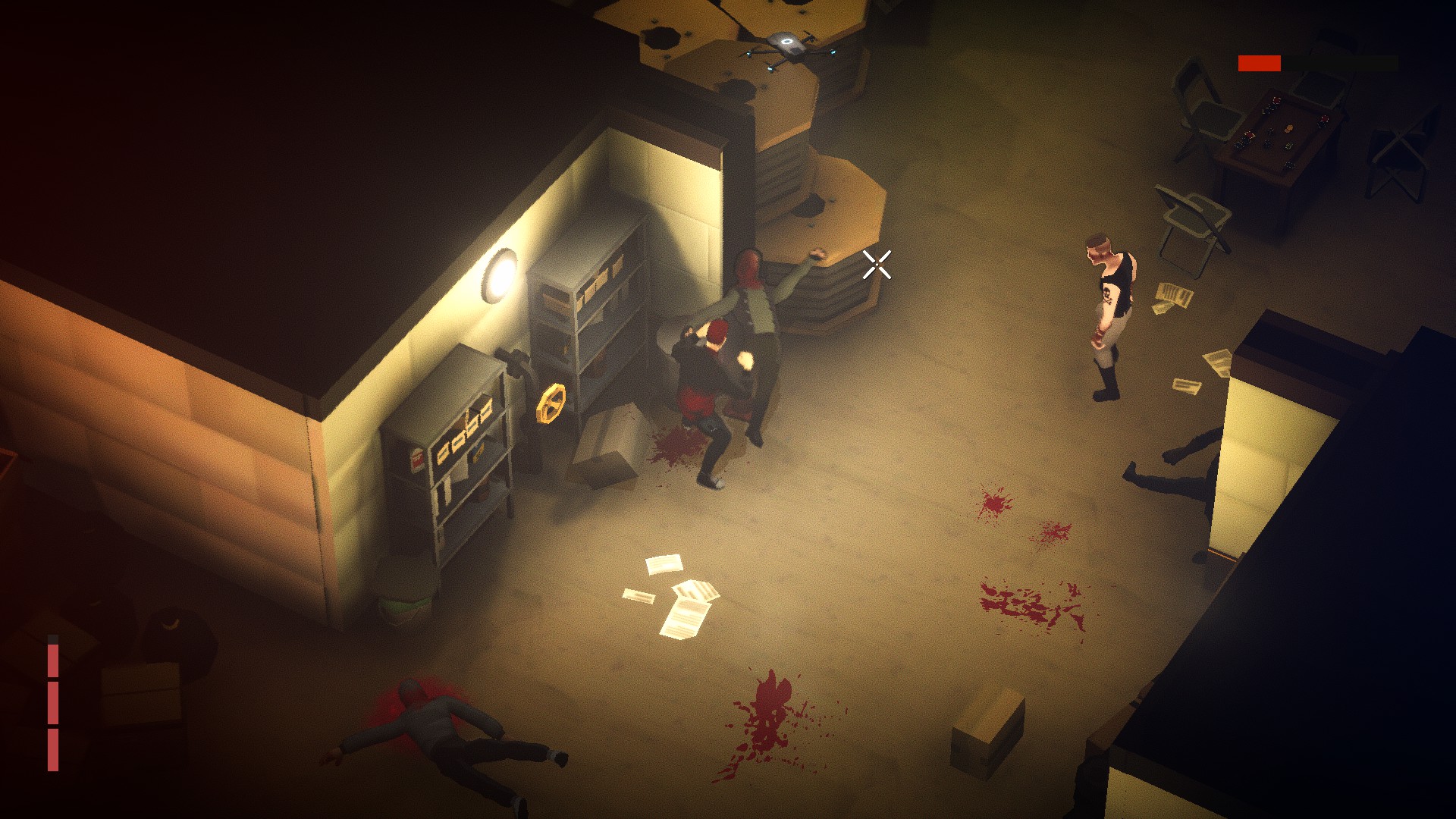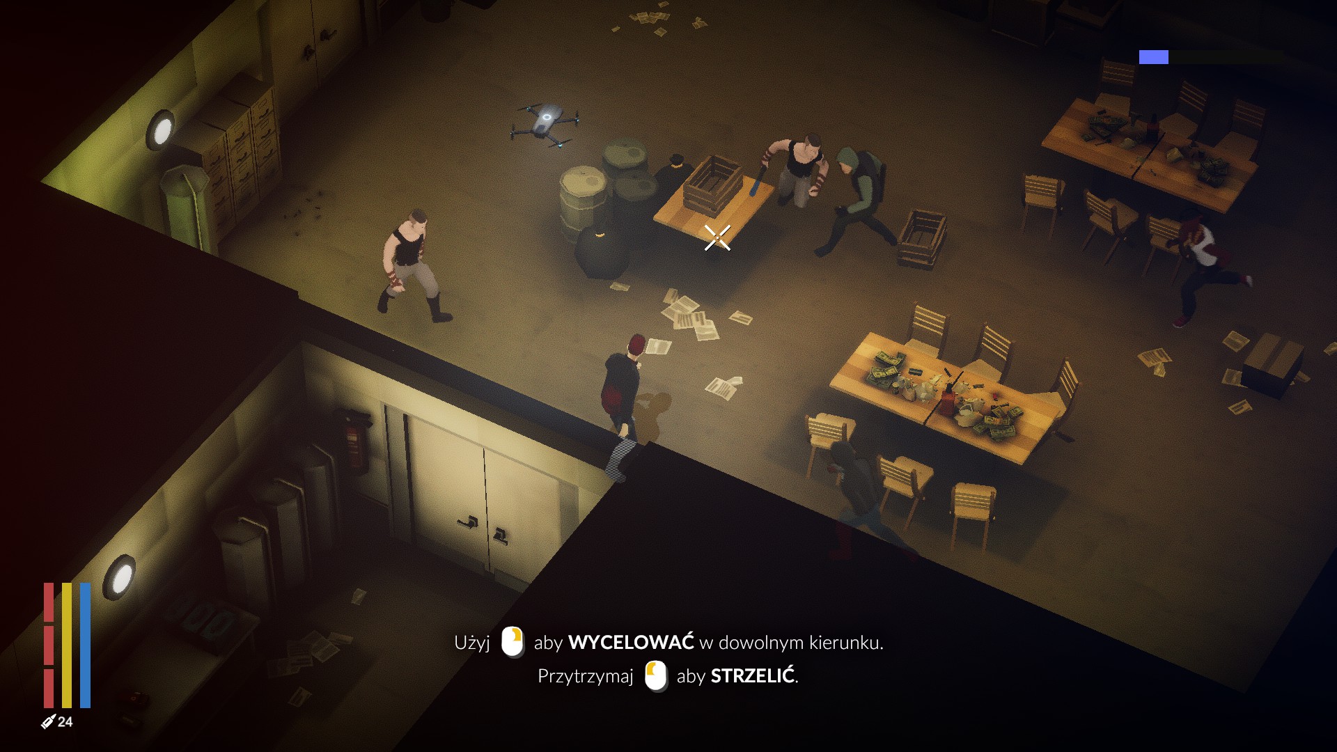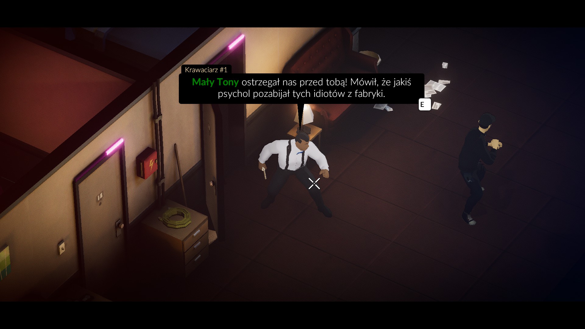 Midnight Fight Express stawia przede wszystkim na szybką, bezkompromisową akcję. Fabuła, jak i przerywniki filmowe nie mają tu wielkiego znaczenia, wręcz przeciwnie – one mają tylko dawać pretekst do jatki. Akcję w grze obserwujemy z rzutu izometrycznego i moim zdaniem jest to bardzo dobry ruch! Ta perspektywa daje większe pole widzenia wrogów oraz przedmiotów, jakich możemy użyć w trakcie intensywnych pojedynków. Choć graczom wysuwają się skojarzenia z Hotline Miami, gra Humble Games przypomniała mi z kolei o kultowym Fighting Force.