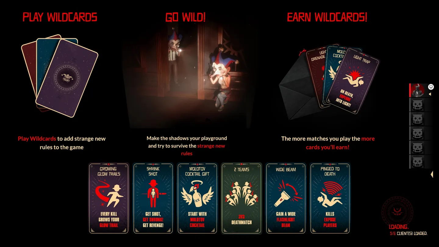 Ciekawym rozwiązaniem jest natomiast sam Wildcards, który jako jedyny wyróżnia się na tle tych „powszechnie znanych” trybów zabawy. W zależności od liczby osób w lobby, każdy z graczy wybiera od jednej do trzech kart — w zależności od ilości graczy w lobby — które są modyfikatorami meczu. Można więc trafić na takie kombinacje jak: zmniejszeni gracze po pierwszym trafieniu, pociski przechodzące przez ściany, echo lokacji, szybkie przeładowanie, szerszy promień światła z latarki czy Mołotow po respawnie. Co więcej, po każdym starciu w Wildcards otrzymujemy jedną lub dwie karty spośród trzech do wyboru, które zostaną w naszej „talii” na kolejne spotkania.
