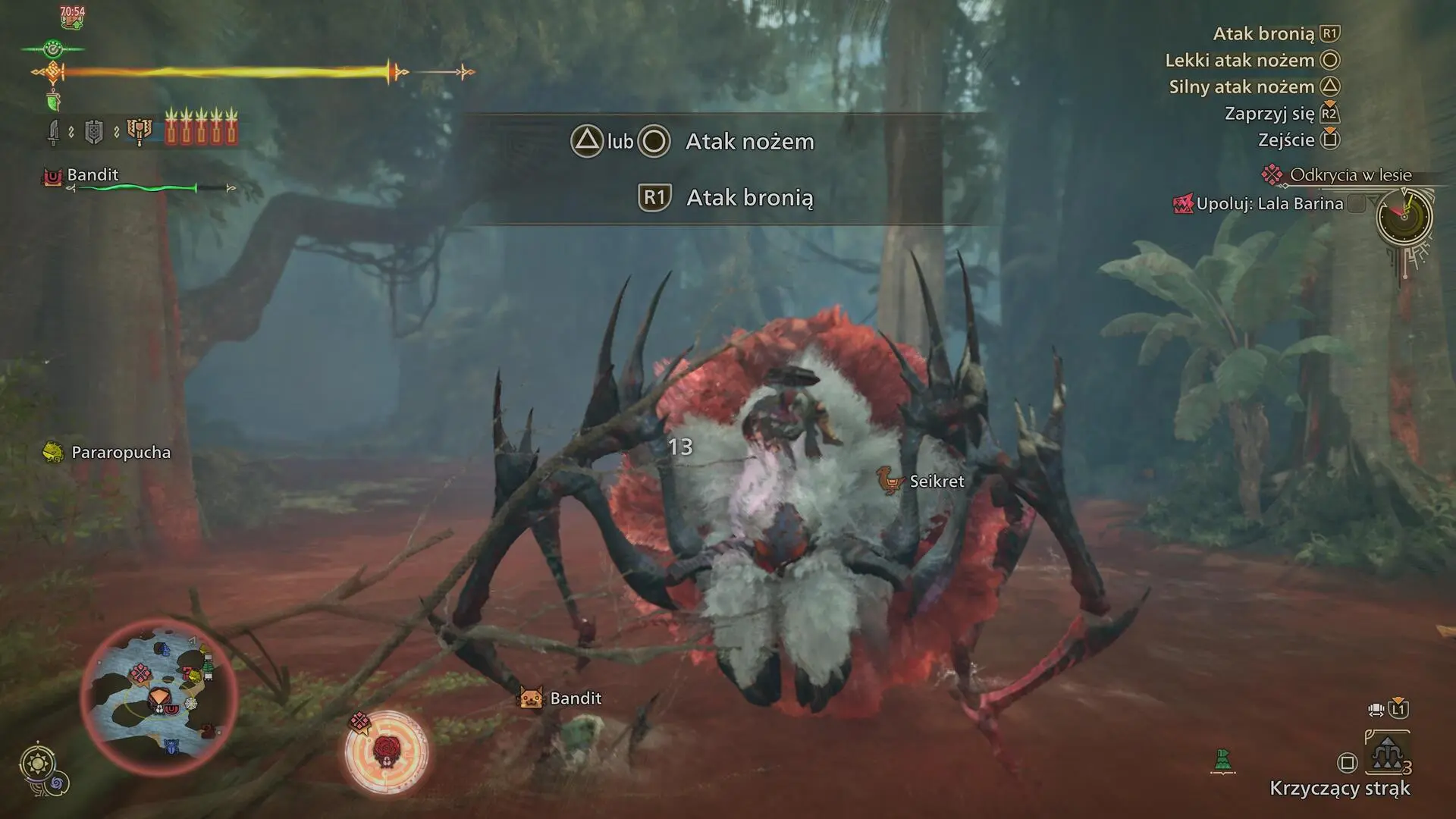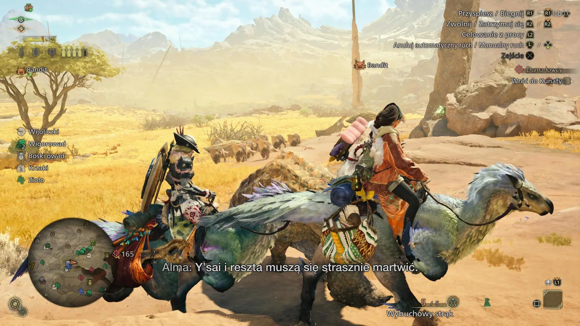 Znów, wszystko to tutaj jest, ale – z małymi wyjątkami – nic nie stoi na przeszkodzie, by wziąć miecz (bądź inny z łącznie 14 różnorodnych typów uzbrojenia) i ruszyć w bój, nie przejmując się przygotowaniami czy tropieniem. W większości przypadków nie będziemy potrzebować wspomagaczy, stwór ciągle widoczny jest na mapie, a samo Wilds oferuje ponadto opcję autopodążania na grzbiecie Seikretów, czyli pełniących funkcję tutejszych wierzchowców, olbrzymich ptaszysk. Jeżeli na widok tych słów skrzywiliście się z grymasem, to pragnę poinformować, że część z tych ułatwiaczy możecie wyłączyć w opcjach, aczkolwiek nie zmieni to faktu, że Monster Hunter: Wilds jest grą zwyczajnie łatwą.