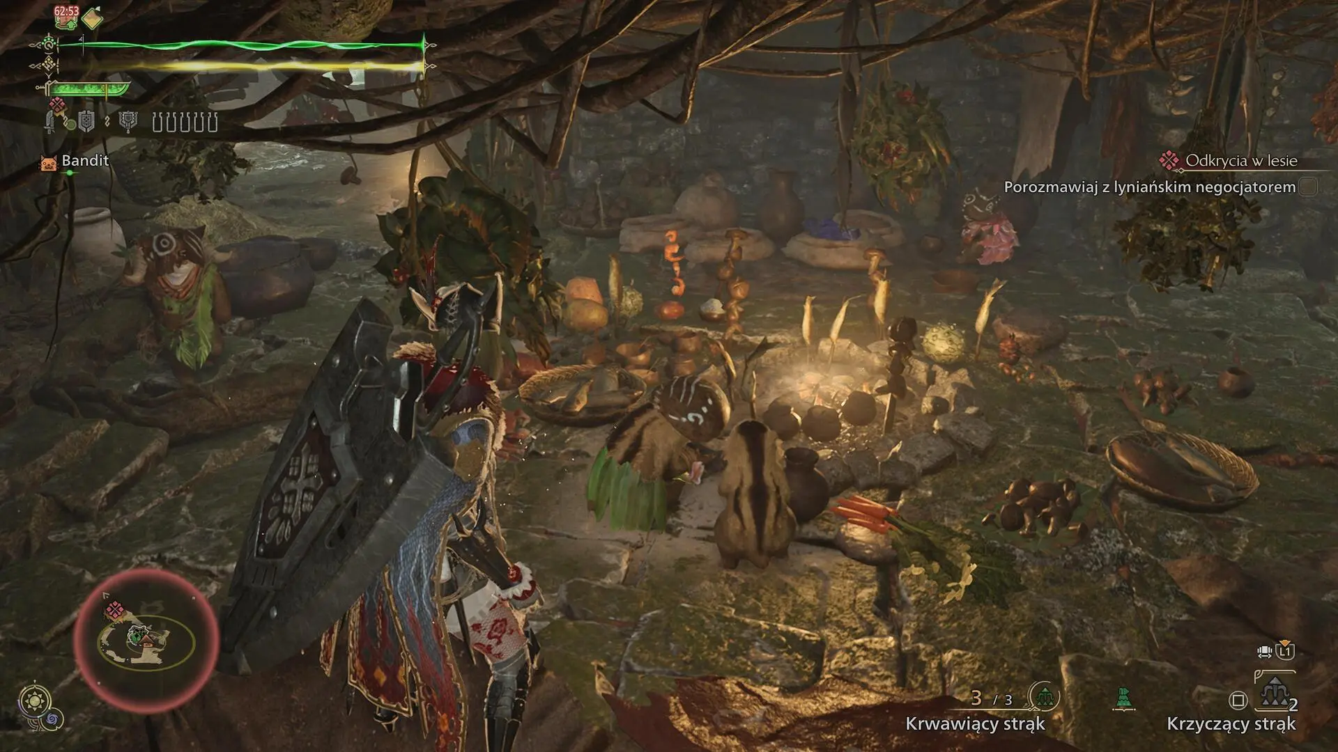 Złego słowa powiedzieć nie mogę natomiast o świecie gry. Zakazane Ziemie, czyli uznawany za niezdatne do życia terytorium, okazuje się zaskakująco zróżnicowanym i pełnym życia miejscem, gdzie znajdziemy nie tylko pustynie i sawanny, ale też między innymi deszczowe dżungle oraz pokryte lodem, górskie przełęcze. Nie brakuje tu przepięknych widoków, aczkolwiek trzeba przyznać, że to właśnie one są główną zachętą do eksplorowania. Choć Monster Hunter: Wilds to w teorii gra z otwartym światem, więc między lokacjami możemy się dowolnie przemieszczać, to w większości są to raczej korytarze służące głównie jako tło potyczek z potworami. Można sobie oczywiście pozbierać surowce czy pójść na ryby, ale nie łudźcie się, że na odkrycie czeka na Was cała masa sekretów. To gra o łojeniu wielkich potworów, więc nawet liczne zadania poboczne w lwiej części przypadków skupiają się na nich. Są na szczęście chlubne wyjątki, jak choćby poszukiwanie okularów wśród przesłodkich i lekko głupawych Leśniaków.