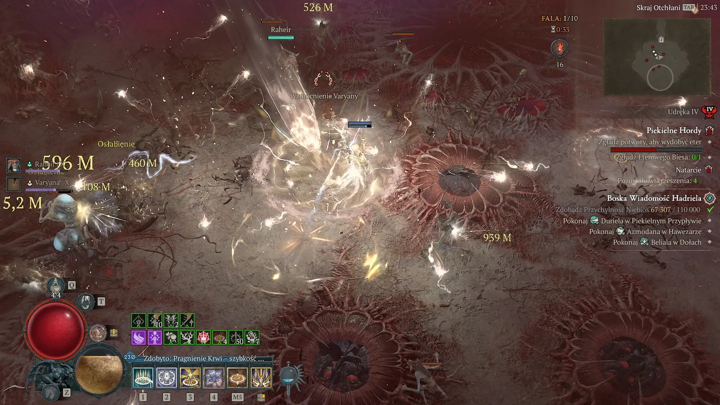 Jedyny problem, jaki napotkałem przez niemal pięćdziesiąt godzin gry w Diablo IV, to sytuacje, w których ginąłem, nie znając przyczyny. Mam wrażenie, że moja postać czasem zwyczajnie blokowała się o te plugawe demony, a niektóre ich umiejętności wydają się źle skalibrowane pod względem hitboxów. Czasami zgon następował po chwili, gdy — teoretycznie — nic nie powinno mnie już trafić. Przykładem mogą być latające ogniste „piły”, które potrafiły zabić mnie nawet poza zasięgiem. Możliwe, że to efekt drobnych problemów serwerowych, choć ping wyświetlany podczas rozgrywki na to nie wskazywał.