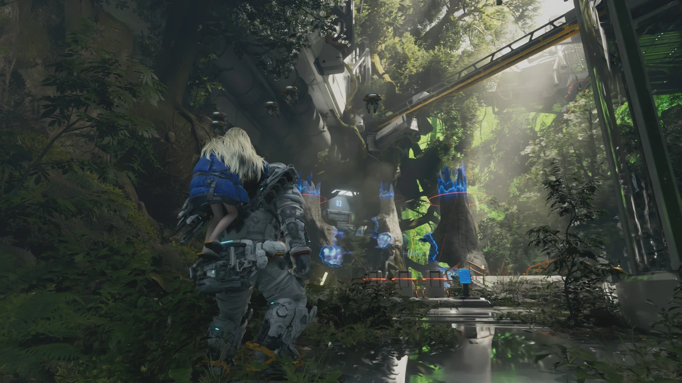 Stacja Bastion została podzielona na kilka głównych sekcji, z których każda kryje w sobie mniejsze segmenty. Od pewnego momentu zaczynamy odkrywać specjalne przejścia pełniące funkcję punktów kontrolnych, pozwalających na szybki powrót do Azylu. To właśnie tam możemy wziąć głęboki oddech i przygotować się do kolejnej wyprawy. W bezpiecznych ścianach bazy dokonujemy ulepszeń Hugha i zdolności Diany, a także odblokowujemy nowy ekwipunek. To również kluczowa przestrzeń na swobodne rozmowy z naszą małą towarzyszką – element, którego absolutnie nie wolno ignorować. Relacja tej dwójki to coś wspaniałego, co naturalnie ewoluuje na naszych oczach przez całą grę. Zrezygnowanie z dobrowolnego poznawania tej więzi byłoby ogromną stratą dla odbioru całej historii.