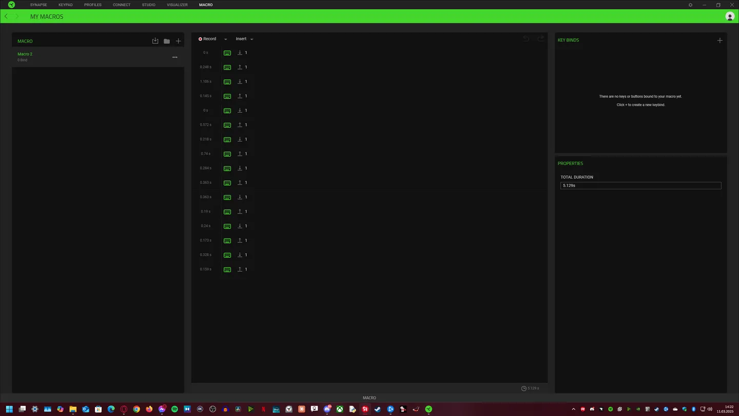 Tutaj z pomocą przychodzą makra, dzięki którym poszczególny klawisz może zyskać nieskończenie wiele funkcji. Firma Razer chwali się nielimitowaną długością pojedynczego makra, oferując takie ustawienia jak: