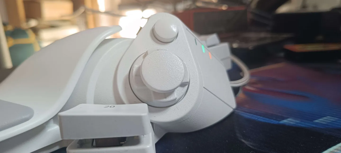 Analog podczas użytkowania wydaje charakterystyczny dźwięk „kliku”, podobny do tego z przycisków myszy. Nie jest to „typowy” analog znany z pada PlayStation. Jedynym problemem w używaniu joysticka analogowego był dla mnie brak wgłębienia na grzybku, przez co kciuk czasami się zsuwał.