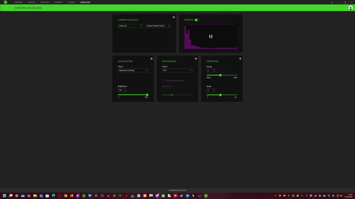 Moduł Studio Chroma oferuje szereg opcji konfiguracji podświetlenia, od efektu oddychania przez symulację płomieni, po aktywację diod LED przy naciśnięciu przycisku. Dodatkowo, dzięki aplikacji Audio Visualizer, urządzenie może działać jako wizualny equalizer, reagując na odtwarzaną muzykę.