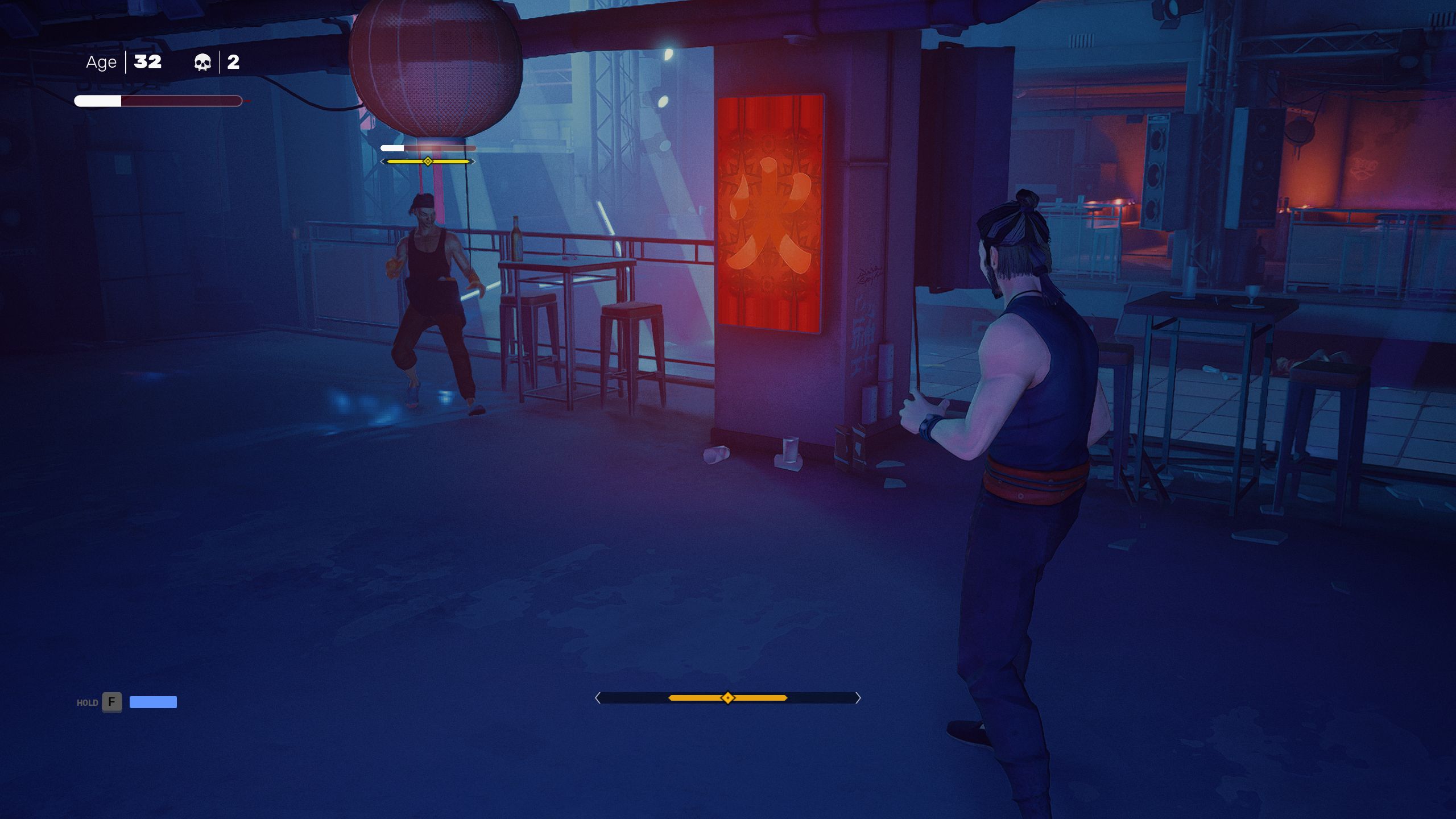 Przygodę zaczynamy w wieku 20 lat, dość młodo, jak na mistrza sztuk walki, ale nasza metryka będzie zmieniała się w trakcie gry. Tutaj należy zaprezentować pierwszą z ciekawych mechanik zaproponowanych przez autorów. Nasza postać będzie starzeć się wraz z każdą przegraną. Dzieje się to jednak w sposób nieregularny, gdyż z każdą kolejną śmiercią będziemy starzeć się o więcej lat. Licznik można jednak kontrolować. Prędkość z jaką siwiejemy, obniża pokonywanie elitarnych wrogów lub użycie specjalnej zdolności.