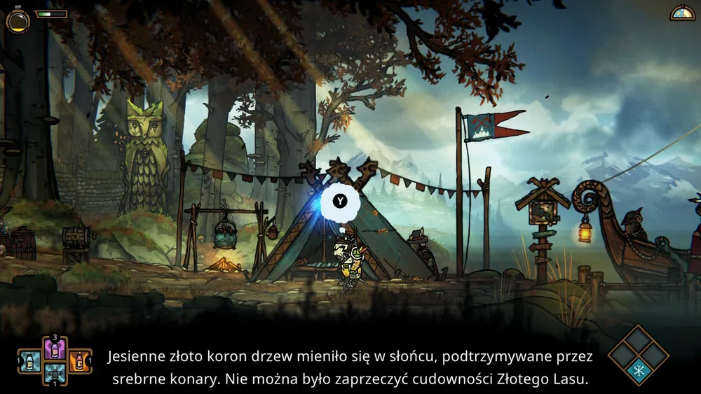Na koniec zostawiłem sobie oprawę audiowizualną, bo ta jest piękna. Twórcy znowu stanęli na wysokości zadania. To piękna produkcja z ciężkim klimatem. Na planszach ciągle coś się dzieje. Doug Cockle w roli narratora, czyli angielski głos Geralta z Rivii. Sprawdza się świetnie, budując klimat i tłumacząc nam historie. Jakby opowiadał nam baśń. Powtarzam się, ale bardzo żałuję, że jest to produkcja indie i nie otrzymała polskiego dubbingu. Czasami trudno przez akcję na ekranie skupić się na tym, co mówi narrator, zwłaszcza jeśli musimy do tego czytać napisy. Co do reszty odgłosów, nie ma tutaj za wiele. Twórcy ostrożnie budują klimat, muzyki tutaj praktycznie nie uświadczymy. Była wręcz dla mnie nie zauważalna, głównie przez świetnego narratora.