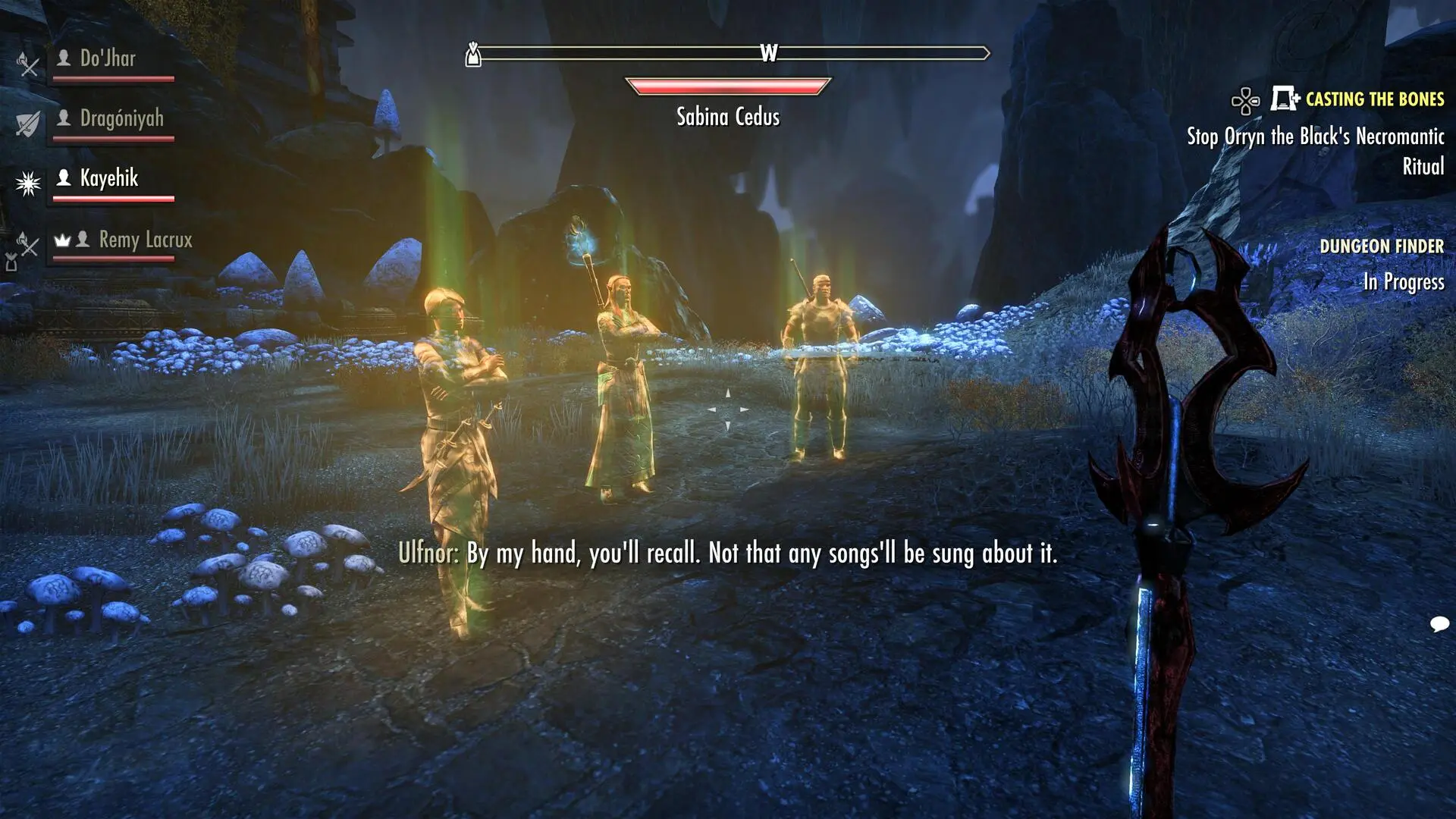 Tytułowego smoka, a przynajmniej to, co po nim pozostało, odnajdziemy w pierwszym z nich. Fang Lair to starożytna dwemerska kopalnia, do której nekromanta Orryn the Black udał się wraz ze swoimi poplecznikami, by pozyskać moc pochowanego w niej gada imieniem Thurvokun. Paradoksalnie jest to jednak – w moim odczuciu – ten słabszy z obu dungeonów. Fang Lair nie zachwyca wizualnie, nużąc wszędobylską szarością, a i bossowie raczej mało zapadają w pamięci, wliczając w to samego smoka, który, choć wygląda świetnie, pozbawiony jest bardziej kreatywnych ataków, nie licząc faktu, że walczymy jednocześnie z nim i Orrynem.