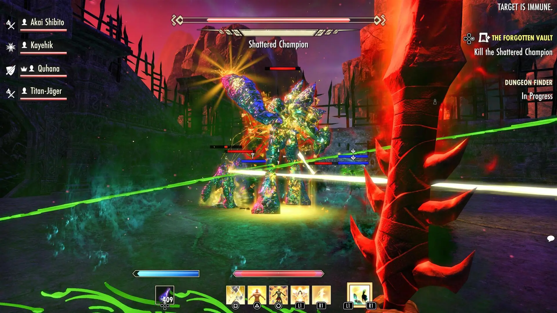 Kosztujące około 60 złotych (1500 koron) Scions of Ithelia bynajmniej nie powala swoją zawartością. Jest to w zasadzie zestaw dwóch nowych dungeonów – Oathsworn Pit i Bedlam Veil. Do nich samych przejdziemy sobie za momencik, bo nie są to wszystkie nowości. Kolekcjonerów ucieszą chociażby nowe zestawy strojów – po trzy na każdy raid – a także nowe śluby Nieustraszonych (Undaunted pledges). Jeżeli natomiast ze swojej sakiewki wysupłacie ponad stówę (3500 koron), to w nagrodę dostaniecie nowego wierzchowca w postaci Ashborne Sabre Cat (taki kocurek pomalowany w czerwone pasy, nawet ładny) i zwierzątko Ashborne Echalette (charakterystyczny dla Wrothgaru stworek, również z czerwonymi paskami), a także pięć zwojów doświadczenia.