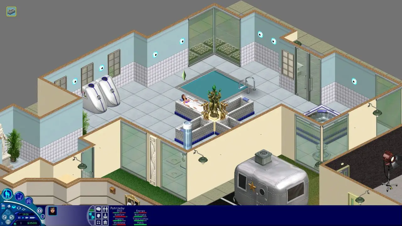 Niestety, przy pierwszej rozgrywce natrafiłam na buga nie do przejścia. Mianowicie, moja Simka usiadła na kanapie, tuląc swojego konkubenta i tak już zastygła na wieki wieków. Co ciekawe, spróbowałam najpierw wysłać Simów w podróż do różnych miejscówek, żeby może jakimś sposobem odblokować niesforną postać, ale niestety – nawet długi czas spędzony poza domem nie zachęcił jej do zmiany pozycji. Nie poddając się, stworzyłam drugą rodzinę, wklepałam bez cienia wątpliwości rosebud w pasku kodów (;!;!;!;!;!;!;) i postanowiłam zabawić się tak, jakby jutra miało nie być. Zbudowałam duży dom, wyposażyłam go w dość absurdalne obiekty, zbudowałam basen (z drabinkami), ale czułam, że ciągnie mnie na zewnątrz.