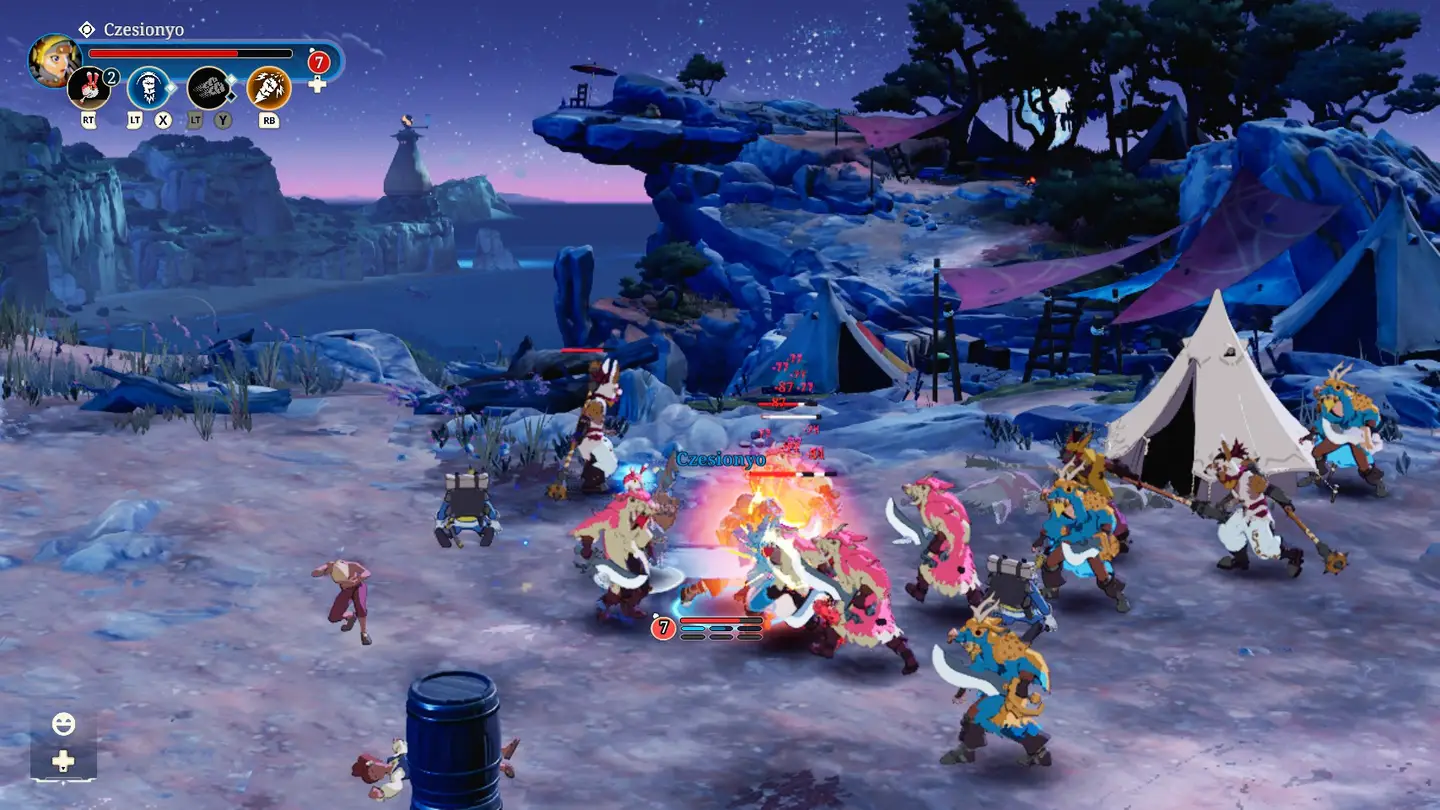 Tak jak wspomniałem na wstępie Towerborne to u podstaw klasyczny beat ’em up, ale połączony z mechanikami sprzętu znanymi z gatunku action RPG. Na głównej mapie rozsiane są pojedyncze misje zarówno te główne, jak i poboczne. Większość z nich kończy się porządną bitką z jakimś bossem. Muszę powiedzieć, że twórcy naprawdę postarali się o zróżnicowanie nie tylko tych ostatnich, ale także zwykłych przeciwników. Praktycznie co kilka poziomów spotykałem jakiś nowy rodzaj adwersarzy. Jedni latają, drudzy chowają się za tarczą, a trzeci atakują z dystansu. Jest tego oczywiście dużo więcej, ale nie chcę psuć wszystkich niespodzianek. Powiem tylko, że bardzo miło zaskoczyłem się tą różnorodnością.