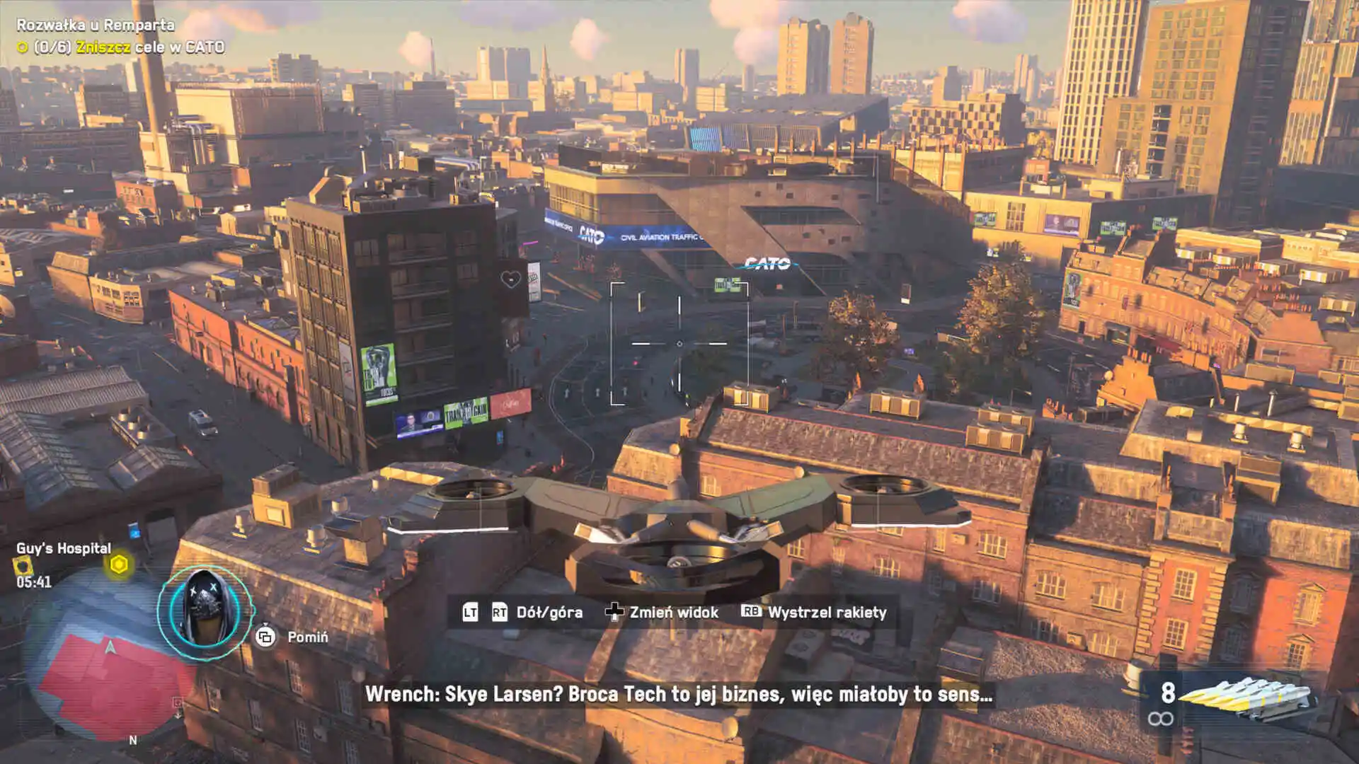 Wprawdzie pojawienie się Aidena Pearce’a w Londynie jest wytłumaczone dość siermiężnie i naciąga nieco definicję sensowności, ale nadal po przygodach z oryginału przyjmuję je z pocałowaniem ręki. Ot, dostaje on zlecenie od swojego fixera, by wykraść jednej londyńskiej korporacji tajemniczy kawałek technologii. Dlaczego ktoś ze Stanów podejmuje się roboty w Londynie i dlaczego zamiast wykorzystać do tego człowieka stamtąd, odzywa się do Pearce’a? Proszę nie zadawać pytań. Jeśli zaakceptujecie ten stan rzeczy, to czeka Was kilka godzin naprawdę przyjemnej zabawy, w której trakcie drogi Aidena i Wrencha przypadkowo się zejdą, by pomimo drastycznych różnic charakteru uporać się z pewnym nieetycznym biznesmenem-wynalazcą, a przy okazji zagłębić się ociupinkę w ich życie prywatne oraz skrywane traumy.