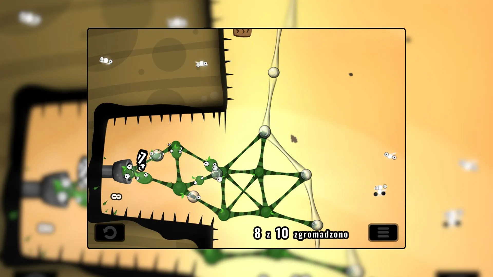 Najgorszym i w zasadzie jedynym problematycznym aspektem World of Goo Remastered jest sterowanie. „Odświeżona” wersja Netfliksa dostępna jest wyłącznie na urządzeniach mobilnych. Ma to swoje plusy, bo krótkie poziomy idealnie sprawdzają się w trasie, a dotykowe przerzucanie kulek w pożądane miejsca często jest szybsze, niż w przypadku myszy. Niestety cierpi na tym precyzja i notorycznie zdarzało mi się chwycić nie tego glutka, którego chciałem lub przypadkowe postawić kolejny segment konstrukcji w zupełnie złym miejscu. Na iPadzie jest to wprawdzie nieco mniejszy problem ze względu na większe rozmiary ekranu, ale granie w World of Goo na iPhonie (lub, szczerze mówiąc, na dowolnym innym telefonie) to katorga. Owszem, od biedy można, ale bądźcie gotowi na to, że Wasze palce będą zasłaniać połowę ekranu i chwytać nie to, co trzeba.