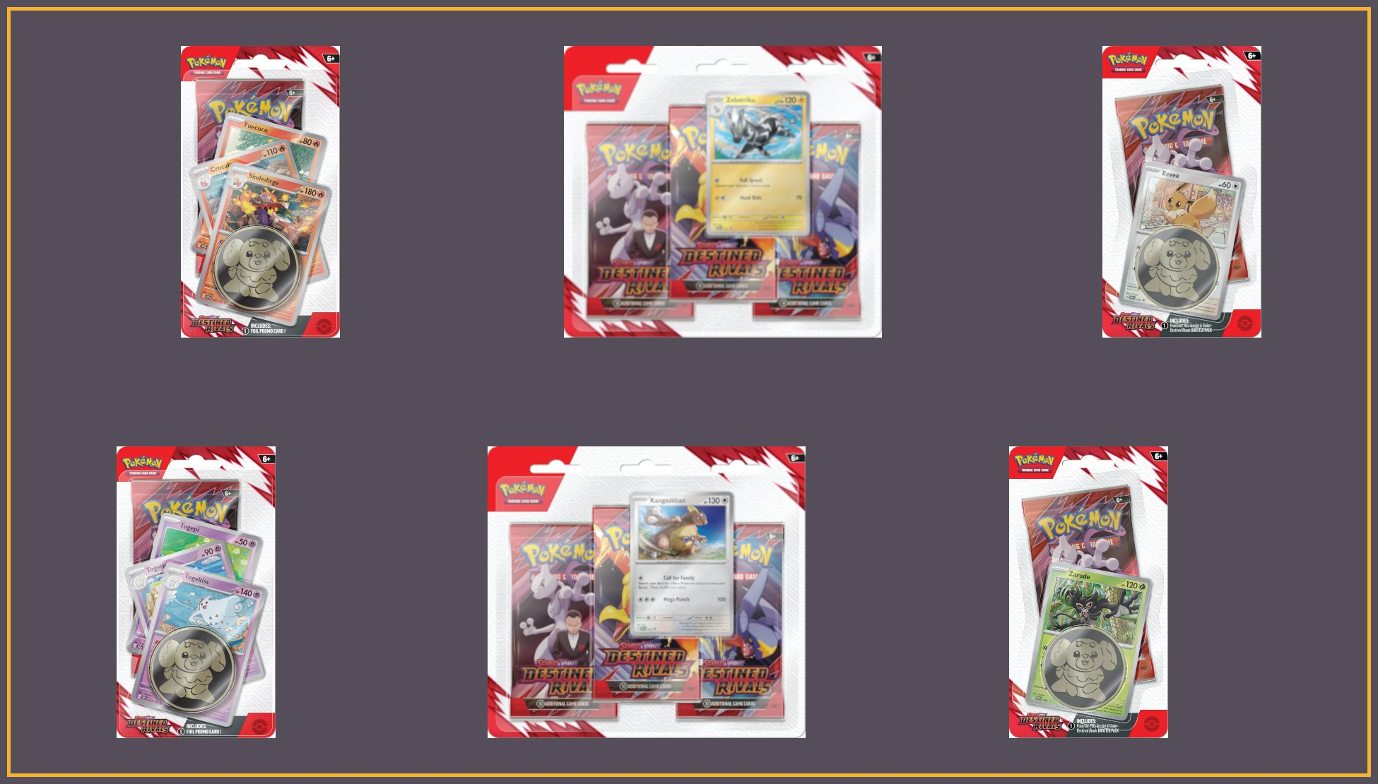 Co więc takiego można będzie dodać do kolekcji dzięki nadchodzącej ofercie? Jak już wspominałem w tekście o premierze Destined Rivals, paczki pakowane po trzy boostery zasilą Kangaskhan oraz Zebstrika. Obie te karty będą należały do linii promocyjnej ery Scarlet and Violet. W pojedynczych blistrach natomiast znajdziemy zarówno monetę z wizerunkiem Fidough, jak i promo karty, na których widnieją ilustracje z Zarude i Eevee.